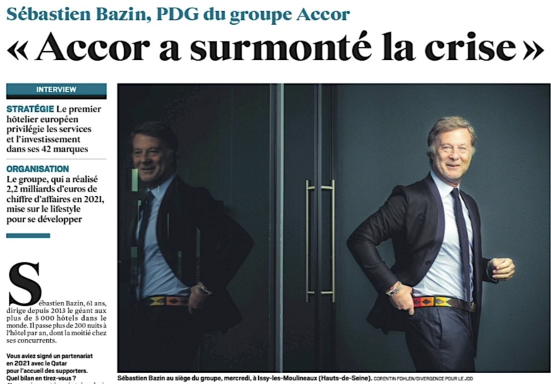 Retrouvez ci-dessous l’interview accordée ce week-end par le PDG du groupe Accor Sébastien Bazin au JDD (Journal du Dimanche). Avec ses 42 marques et ses 5000 hôtels dans le monde est devenu le premier groupe hôtelier européen.
