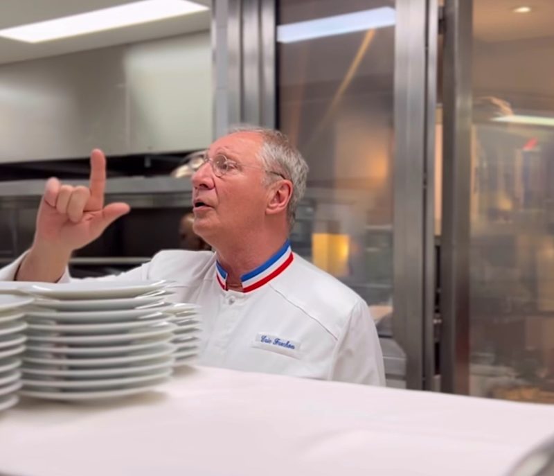 Le chef Éric Frechon recevait ce mardi soir à son restaurant Épicure de l’hôtel Le Bristol Paris où il a oeuvré durant 25 ans, dont 15 ans titré de trois étoiles au guide Michelin. Parmi les prestigieux invités, le chef Guillaume Gomez détaché du Palais de l’Élysée pour représenter la Gastronomie Française et Gwendal Poullennec directeur monde du guide Michelin. Parmi les rares chefs invités on pouvait voir le chef Christian Constant et le chef Yves Camdeborde. Aux côtés de la presse et de quelques amis proches du chef et de son épouse Clarisse Frechon, on trouvait aussi la famille Oetker, propriétaire du palace et Luca Allegri le Pdg du Bristol.