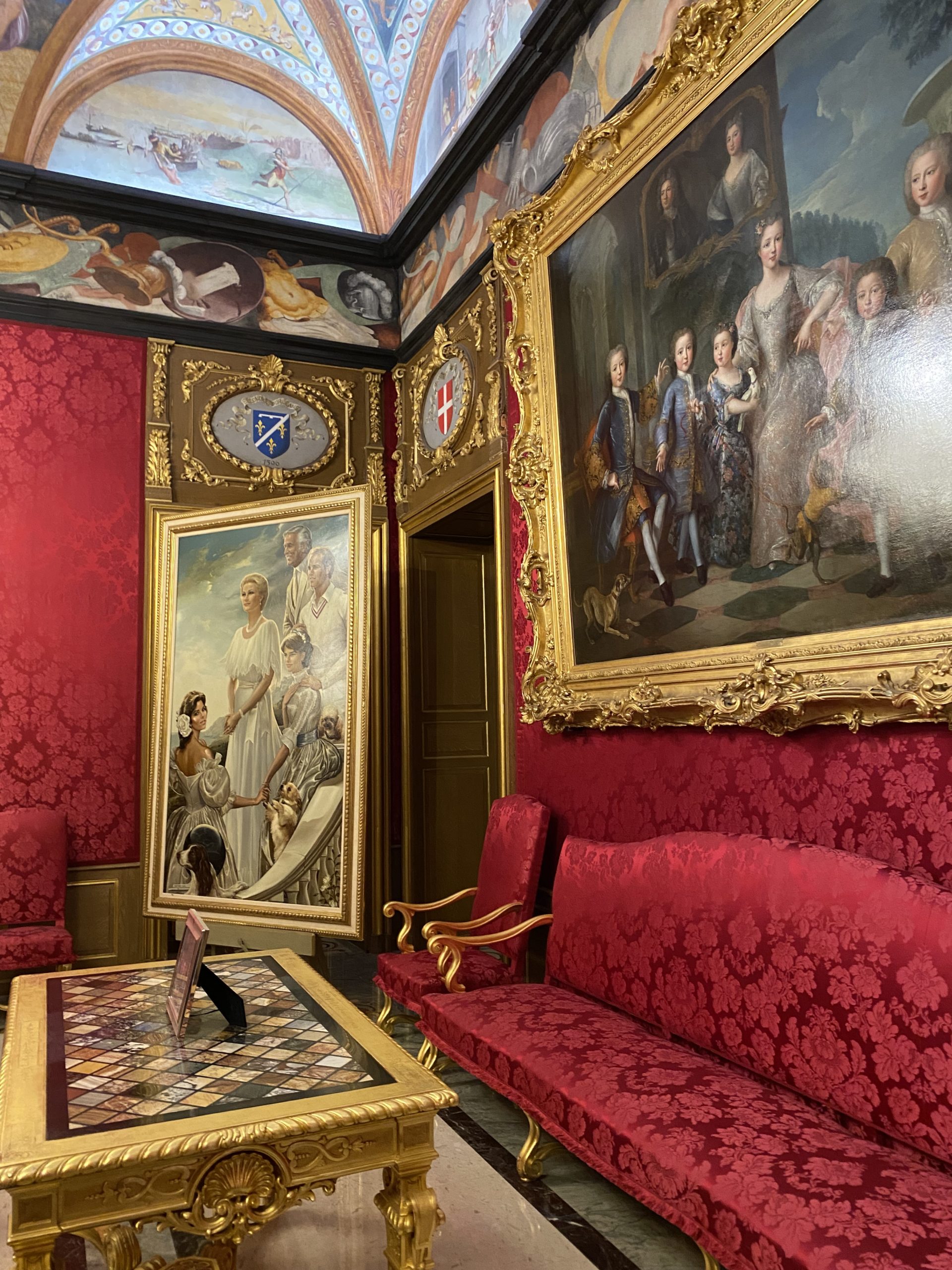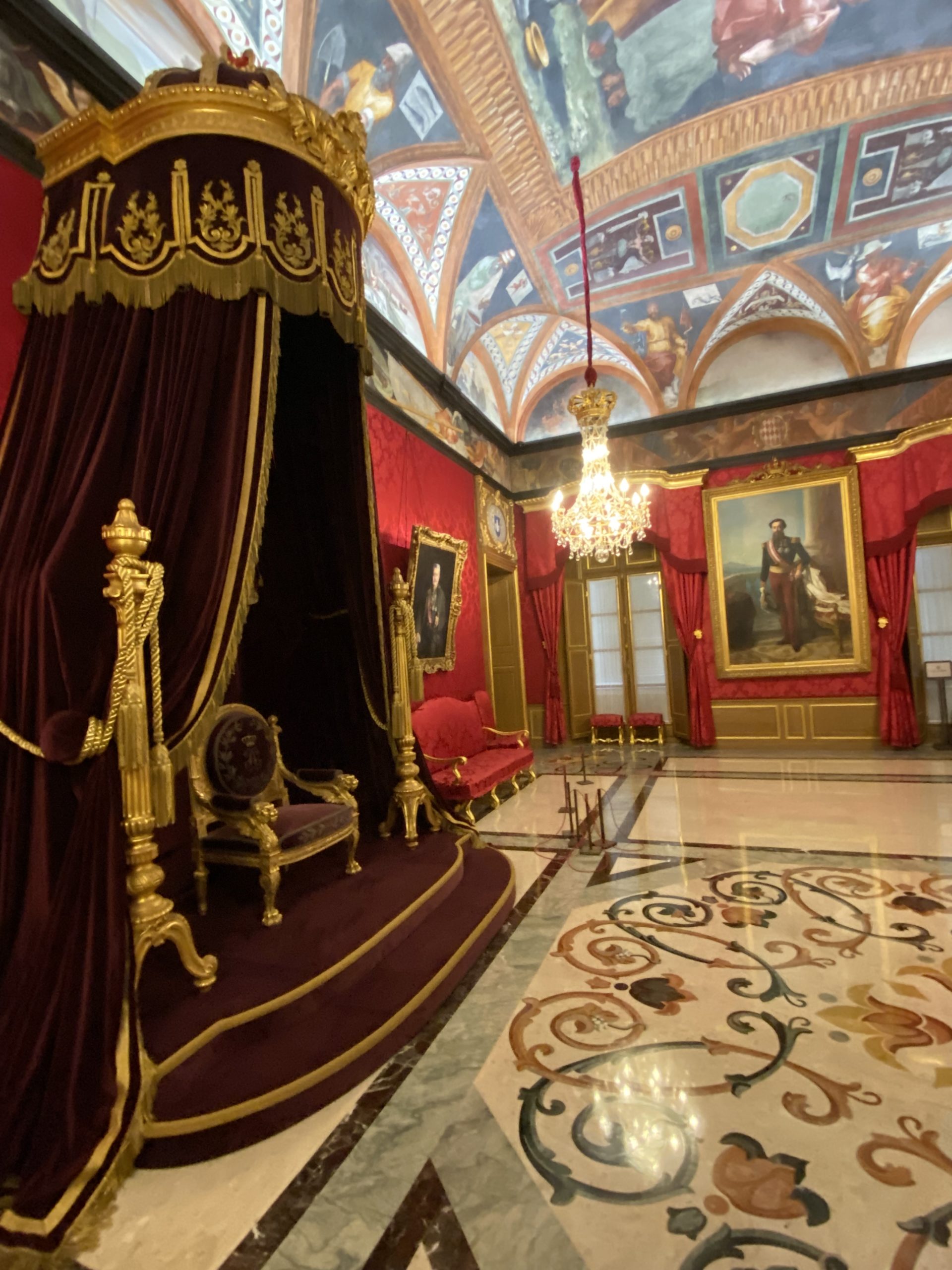 La salle du trône, où se déroulent les déjeuners et dîners officiels, impressionne par sa solennité. Elle porte aussi en elle une mémoire singulière : c’est ici que Grace Kelly et le Prince Rainier III se sont mariés civilement, tout comme Albert II de Monaco et la Princesse Charlène.
