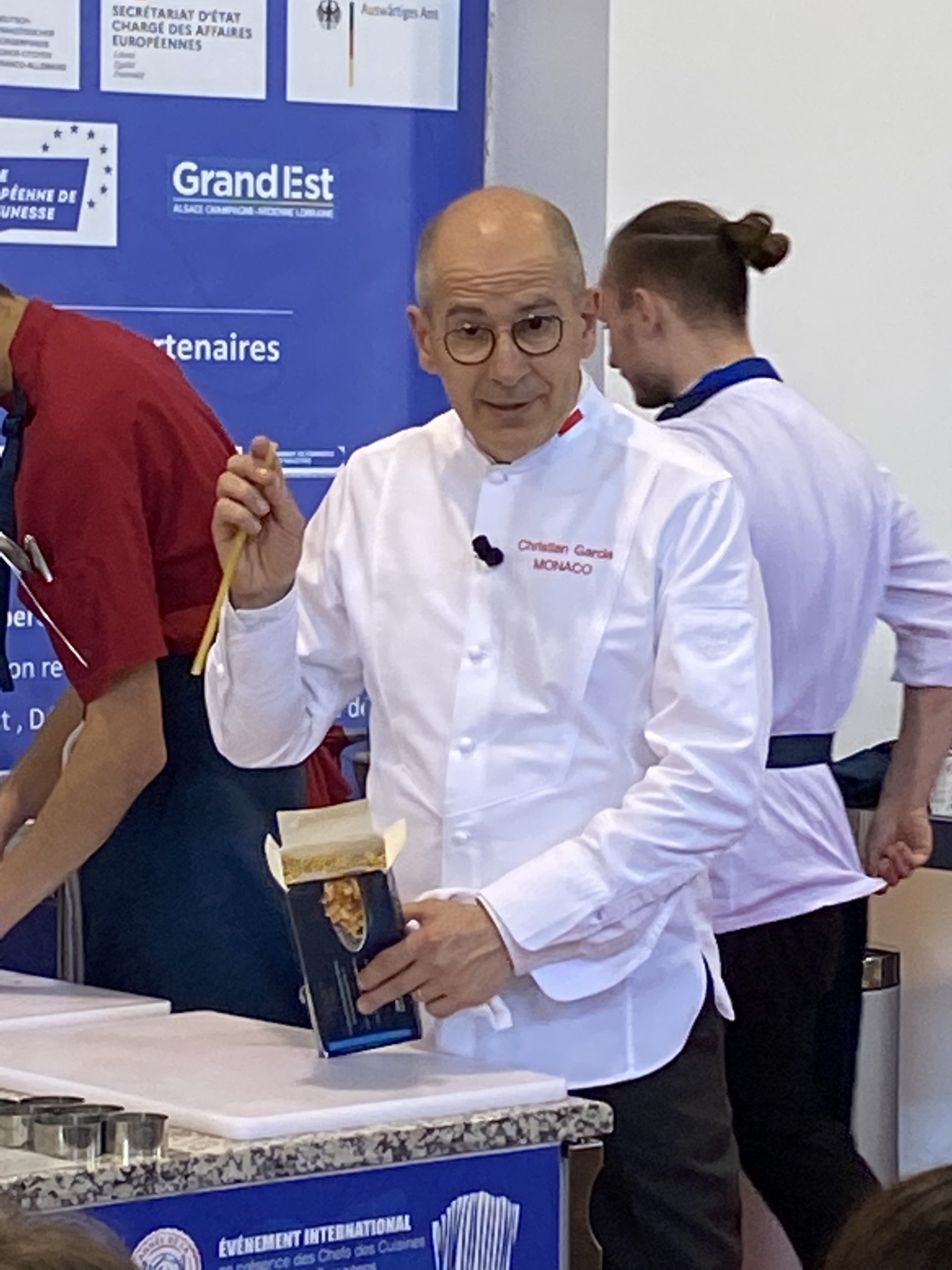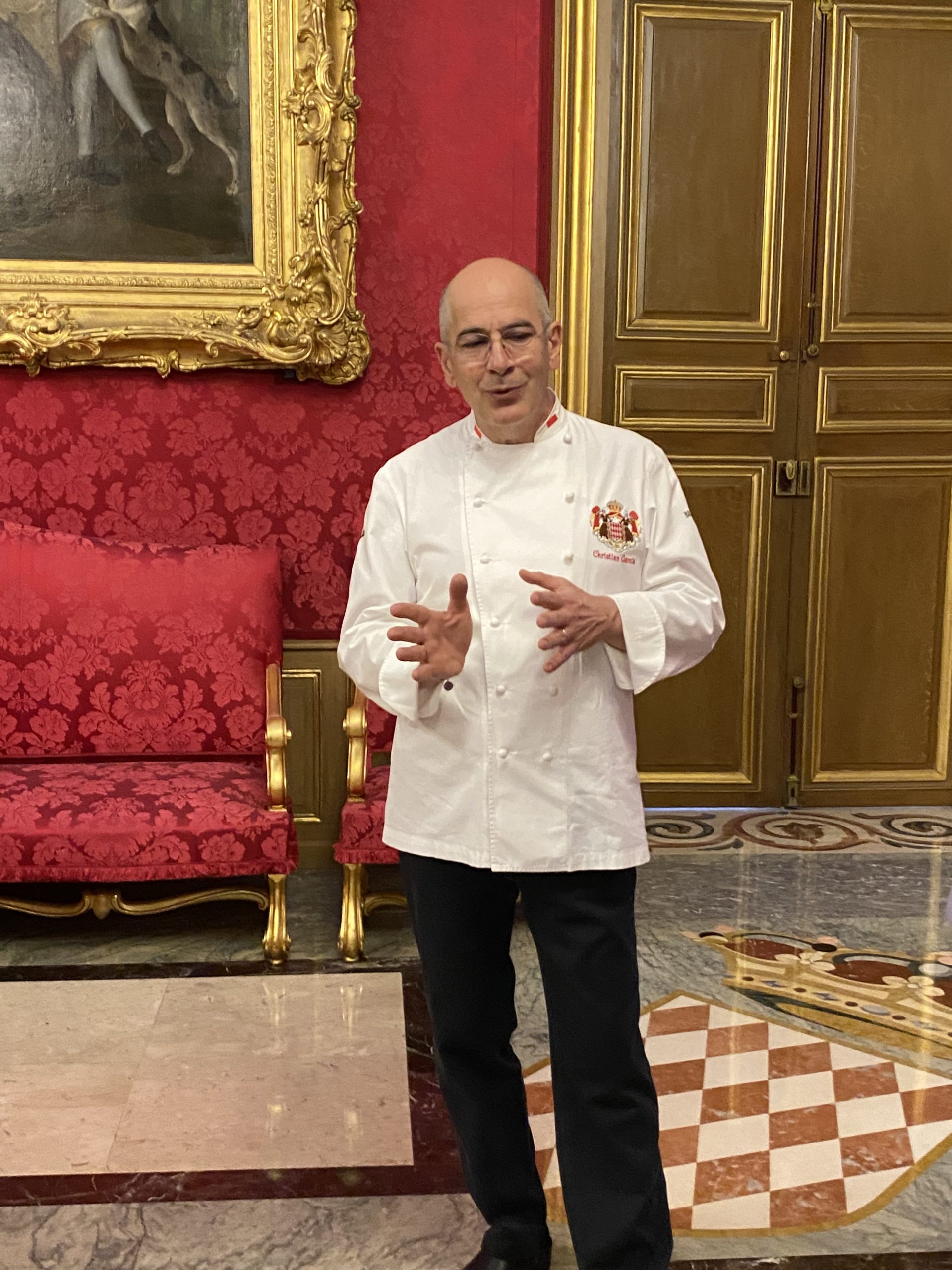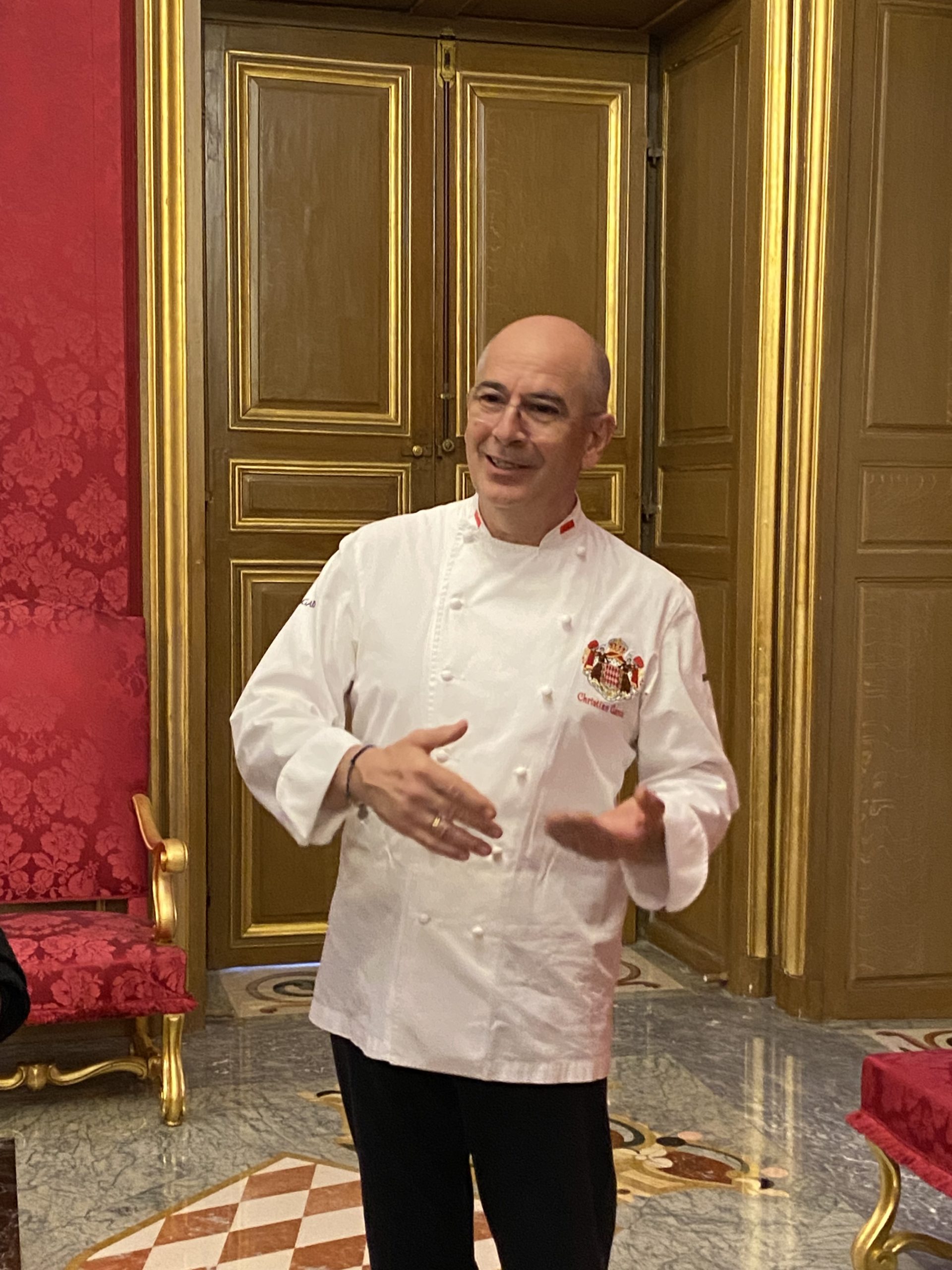 Mais derrière ce faste, une autre histoire se joue, plus discrète, presque intime : celle des cuisines du palais. C’est là que Christian Garcia, chef de cuisine de Son Altesse Sérénissime et président du Club des Chefs des Chefs nous a reçu. Loin de toute rigidité protocolaire, nous nous retrouvons… nous nous étions effectivement déjà rencontrés en mai 2022 à Verdun au Centre Mondial de la Paix, des libertés et des Droits de l’Homme pour une rencontre placée sous le signe de “la gastronomie comme outil diplomatique et vecteur de paix.”
