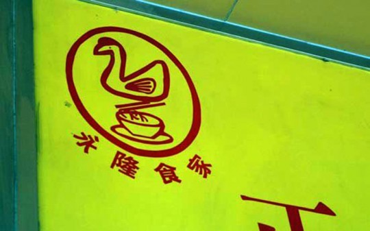 Infos pratiques : pour manger du siu e lai à Guangzhou, prenez le métro et sortez à Jiang Nan Xi. Au numéro 105 de la rue du même nom, vous trouverez un restaurant à façade jaune et marron. Vous y distinguerez un petit logo en forme d’oie, que voici. La façade du restaurant a changé, mais le logo y est toujours. On peut traduire l’enseigne par « Nouilles à l’oie rôtie traditionnelles de Houjie à Dongguan ».