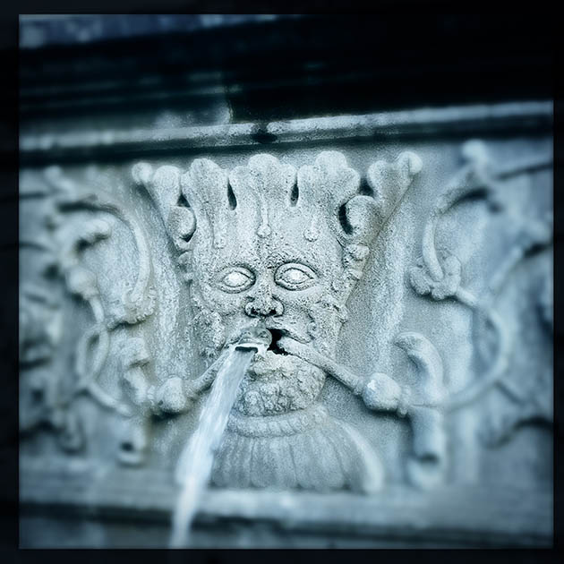 Des figures fantastiques crachent l’eau aux nombreuses fontaines de Clermont-Ferrand.