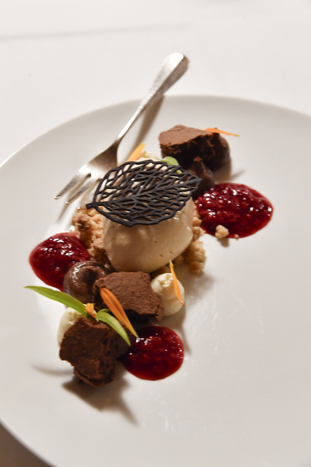 Michael Garcia Lopez aime travailler la viande et le poisson, avec la même exigence. Dans cette région où les fermes sont nombreuses, où l’on pêche le brochet et la truite, il explore toutes les possibilités, toutes les cuissons. Il affectionne même les poissons dits « difficiles », ceux que l’on délaisse trop souvent, comme le poisson-chat, qu’il s’attache à remettre en lumière. Une démarche engagée, presque militante, qui redonne du sens à la notion de produit.