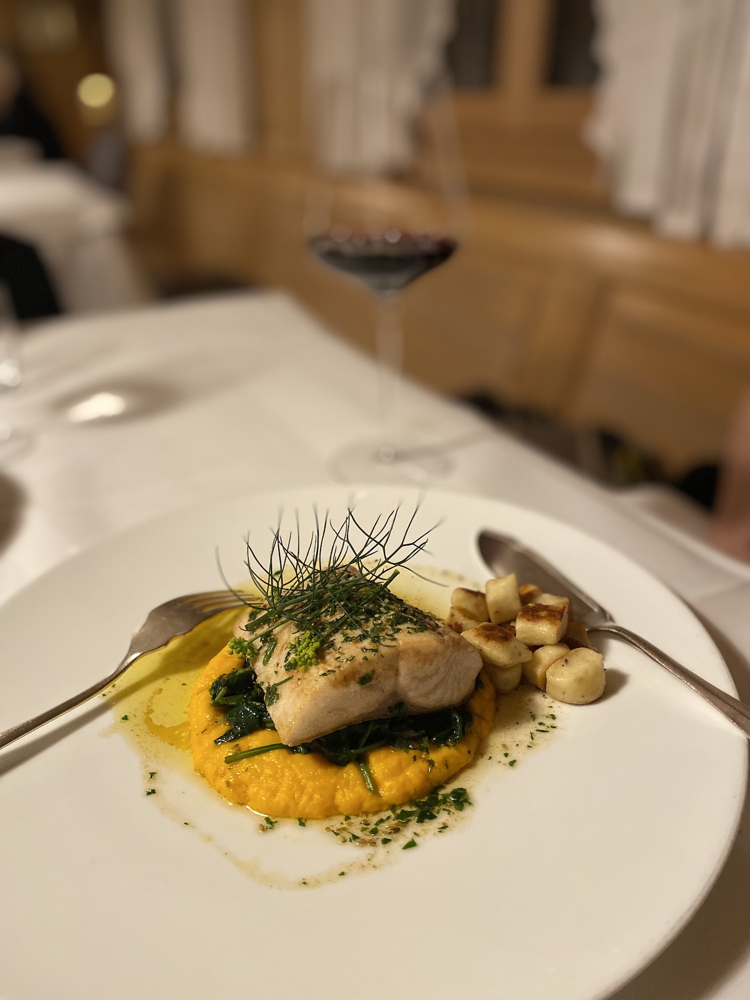 Cette cuisine contemporaine s’inscrit dans un lieu chargé d’âme. Aux côtés de Michael, Wilma, cuisinière traditionnelle et belle-mère du propriétaire, incarne la mémoire culinaire de la maison. Une présence précieuse, tout comme celle d’Hélène Natter Nussbaumer, troisième génération de la famille Nussbaumer-Natter qui possède cet hôtel-restaurant emblématique depuis 1930. Elle en assure la direction avec son mari Dietmar depuis 2005. Le langage culinaire a changé, reconnaît le chef, mais l’esprit demeure. Ici, la modernité dialogue avec un charme classique, sans jamais rompre l’harmonie.