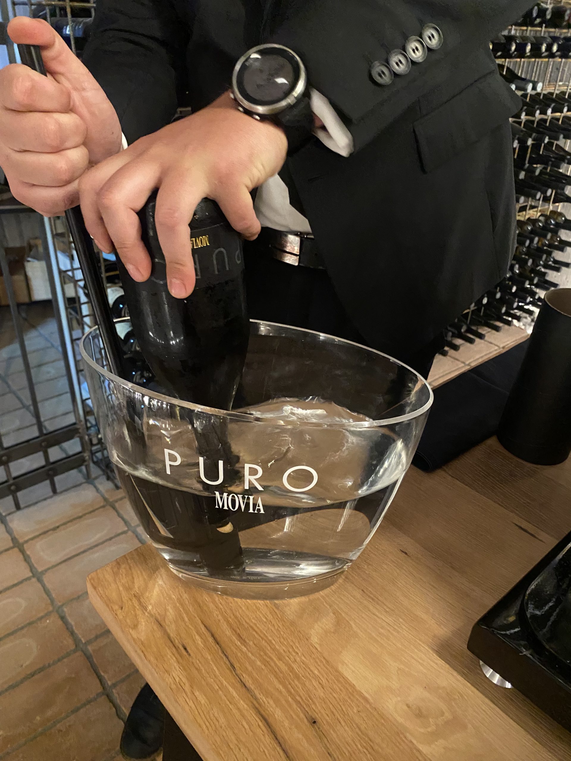 Dégustation d’un des meilleurs effervescents du pays, le PURO de la Maison Movia « Chardonnay Robolla gialla » de Goriska Brda (photo DHV)