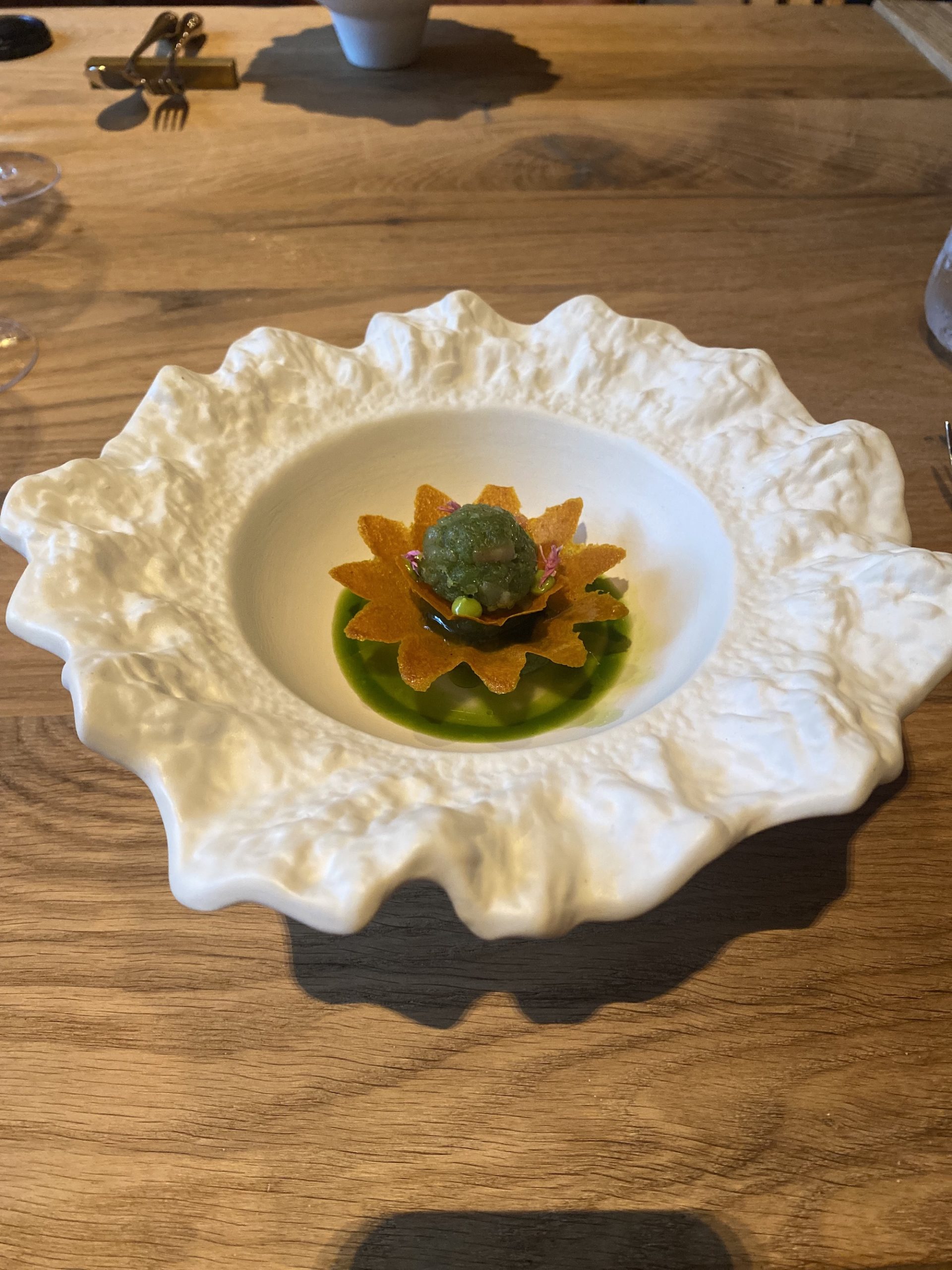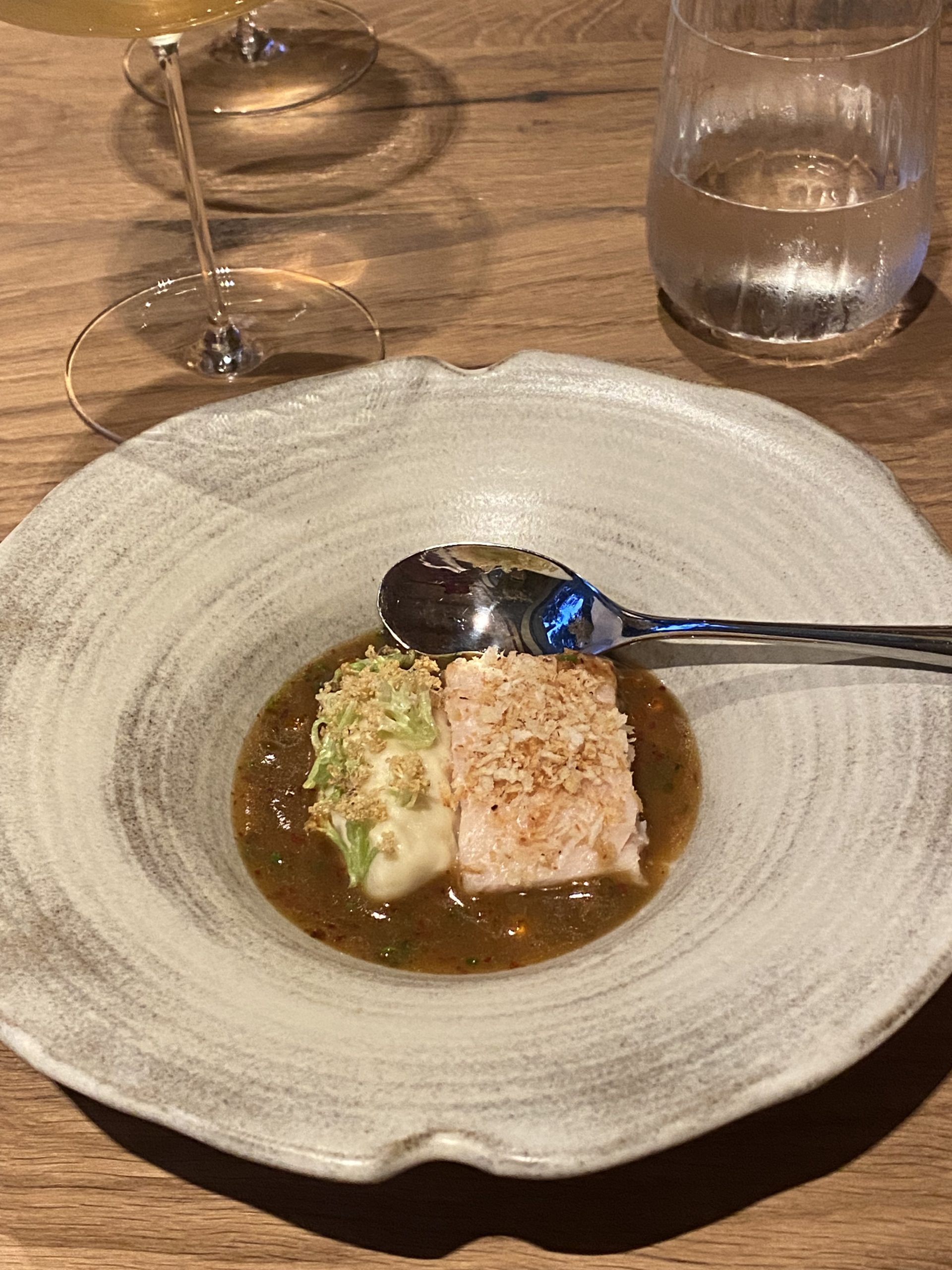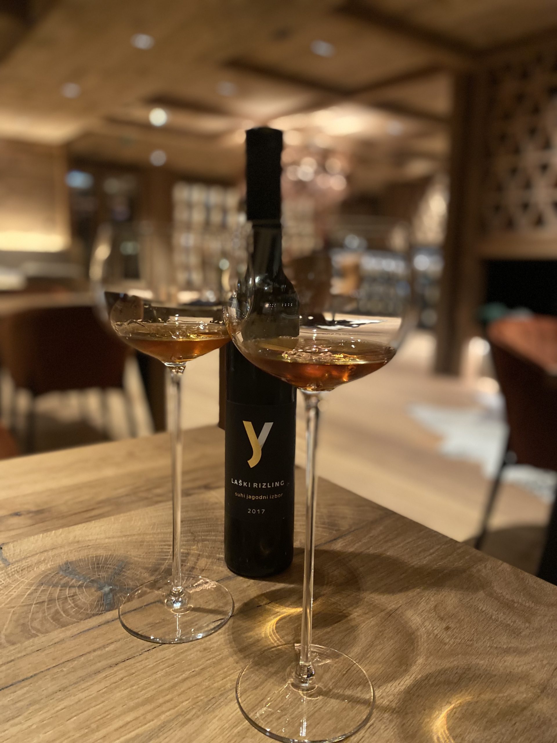 Une jolie et gourmande entrée en matière pour nous préparer au 8 plats dégustation que le chef nous a concoctés, accompagnés de tout autant de remarquables vins slovènes commentés par notre brillant sommelier. Des assiettes extrêmement bien pensées offrant un bel équilibre entre les saveurs et mettant en scène la culture gastronomique locale dans les meilleurs produits que la nature lui offre: Poissons des lacs d’altitude du Parc national du Triclav, gibier sauvage des montagnes, légumes emblématiques de la cuisine slovène comme le chou-rave, raviolis typiques, fruits des bois …