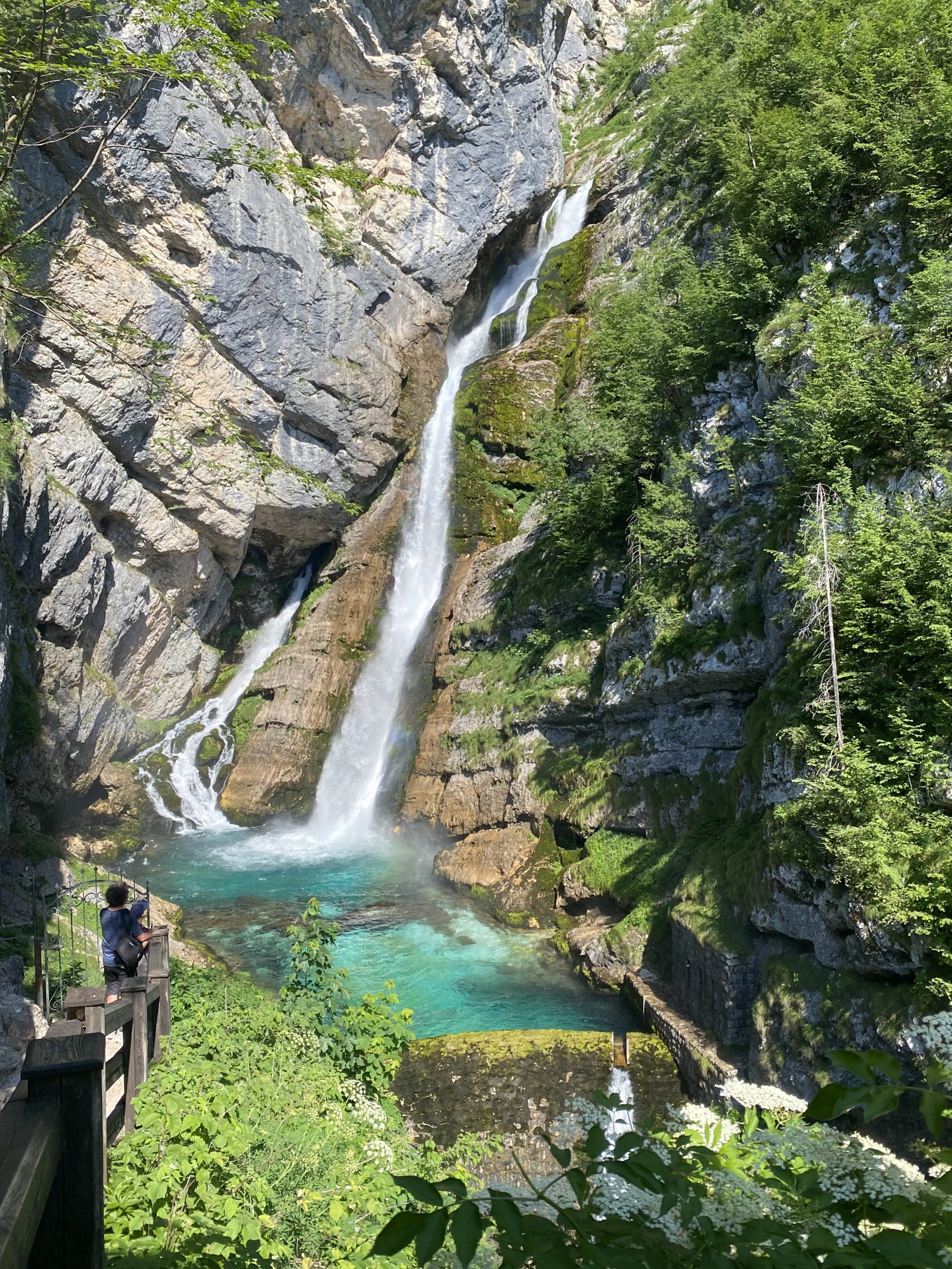 Après une douce nuit dans l’ambiance boisée de notre havre montagnard, nous sommes parties profiter des grands espaces qu’offrent ces Alpes Juliennes, non pas pour arpenter le Mont Triclav, le plus haut sommet du pays avec ses 2864m mais pour aller nous oxygéner à la cascade de Savica que l’on atteint après avoir arpenté presque 300 marches au coeur de la forêt. Belle balade haute en couleur qui se mérite.