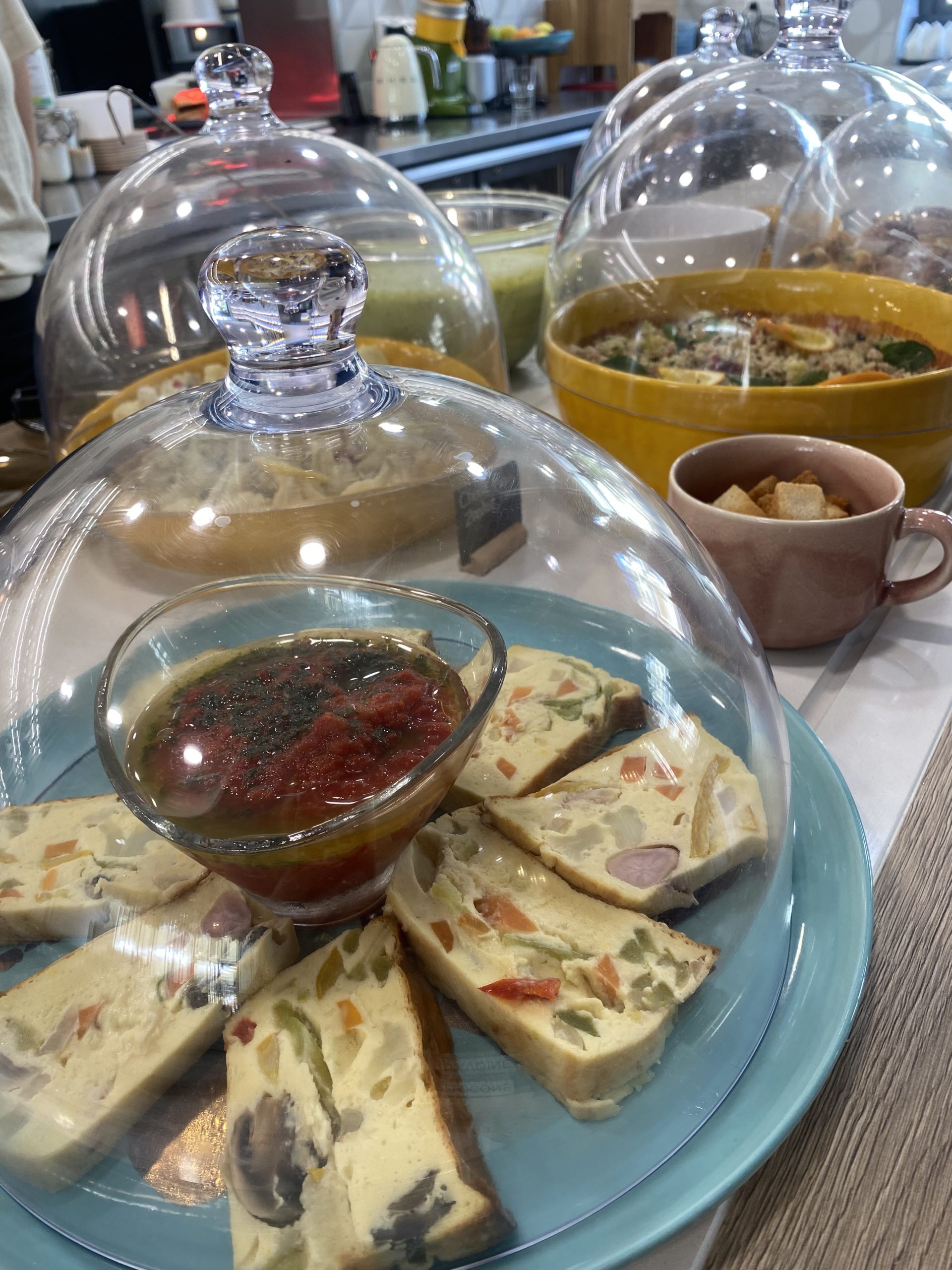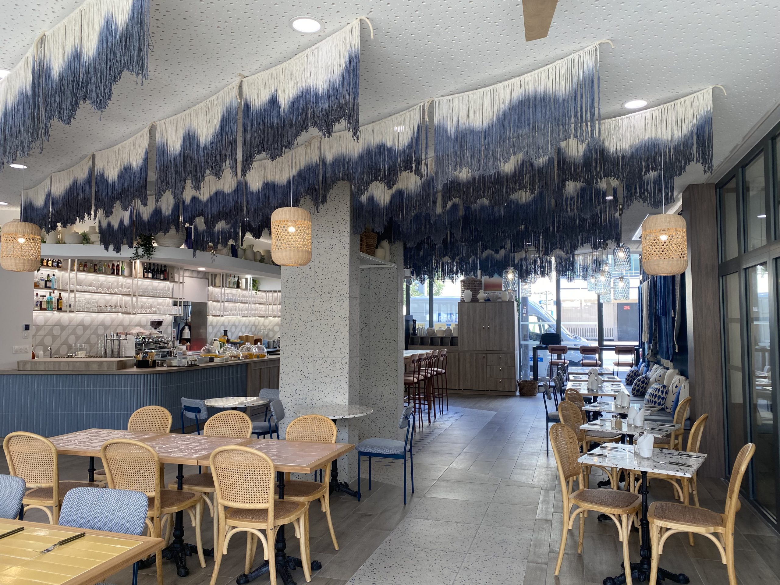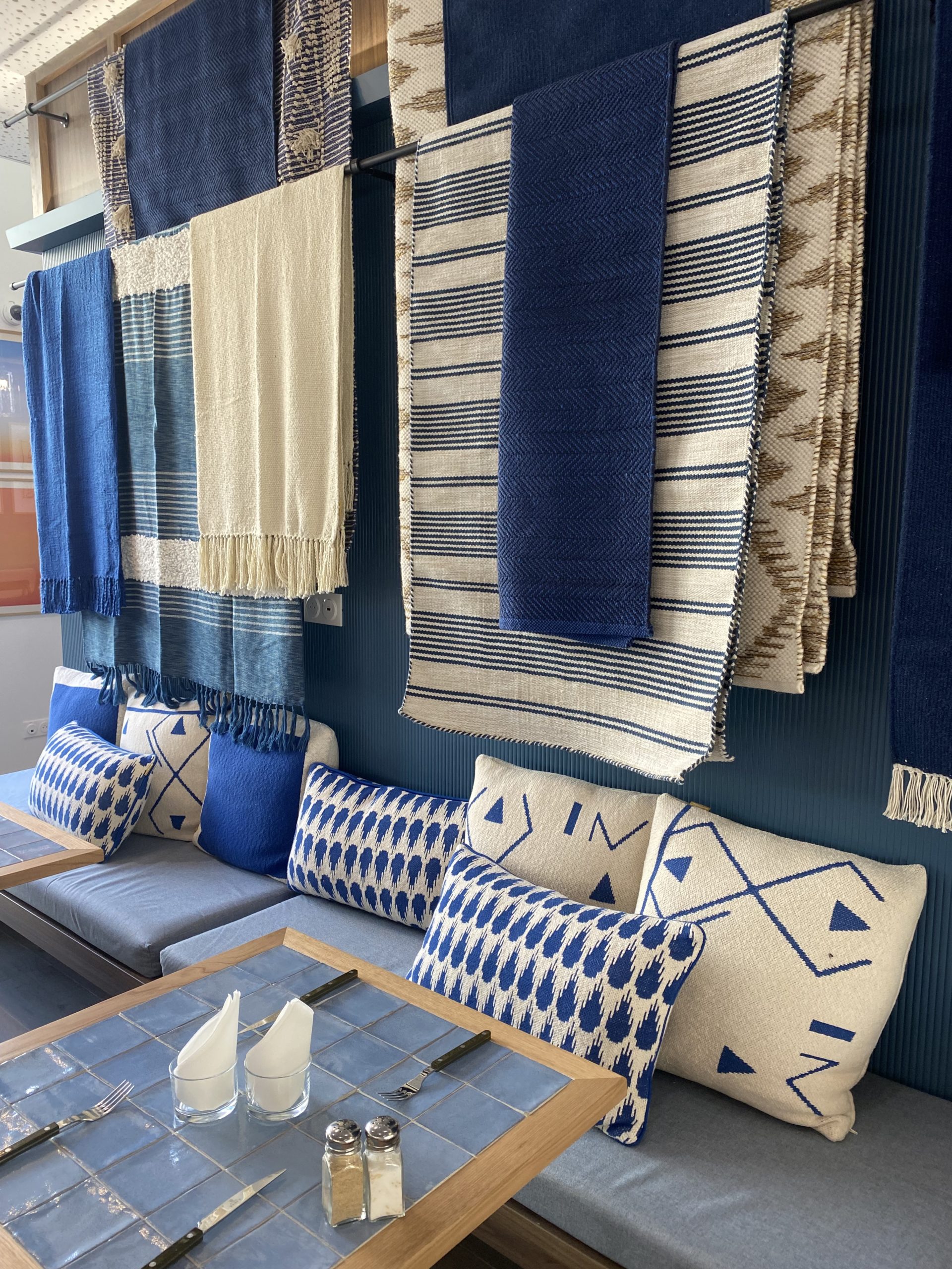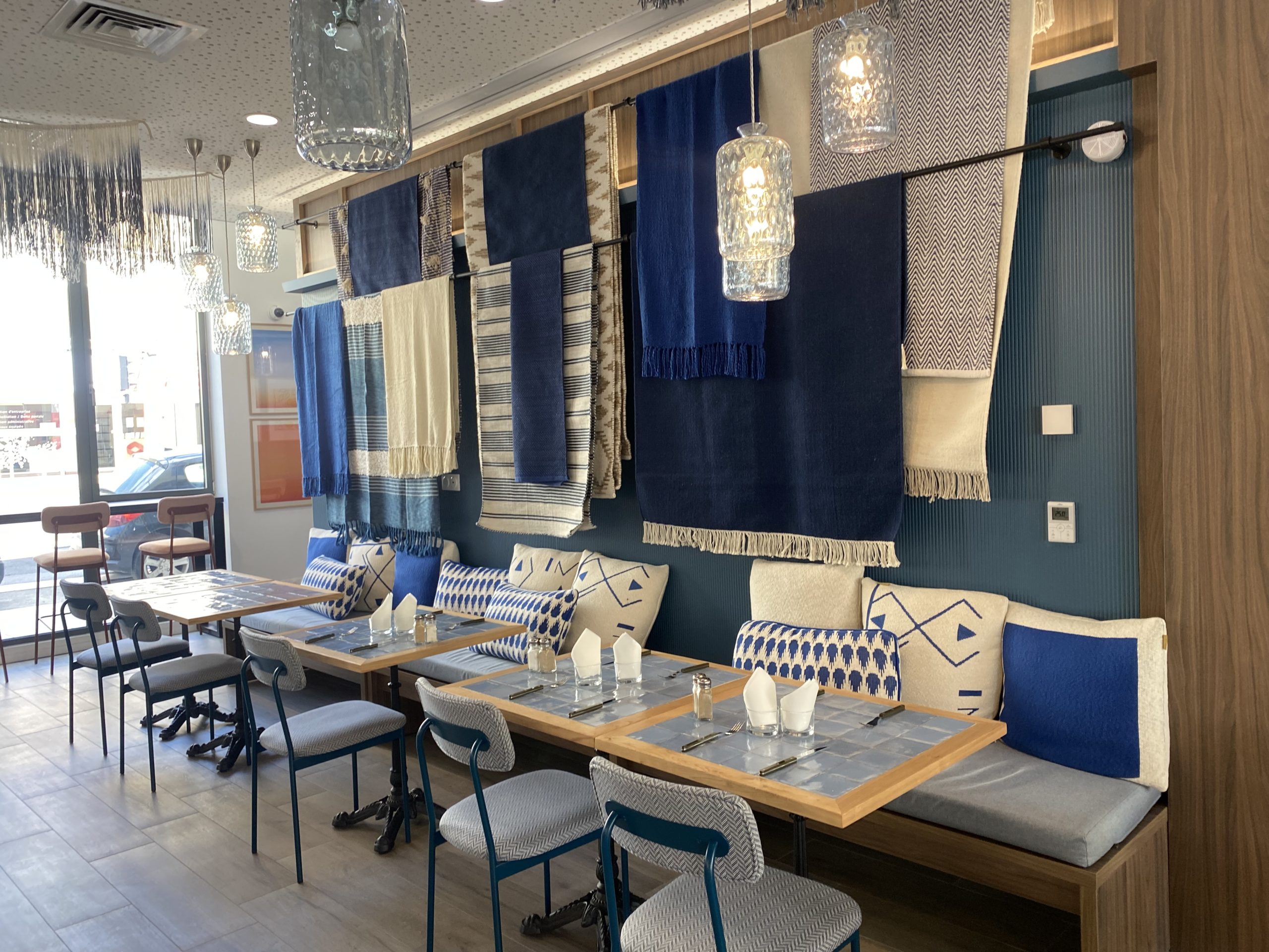 L’architecte d’intérieur Natasha Stojkovic, a imaginé dans l’ensemble de la résidence des styles différents alliant avec élégance le vintage, la couleur, les objets décoratifs, ces petits plus comme les téléphones de toutes époques que l’on retrouve dans chaque espace et qui symbolisent un après-covid marqué par un besoin fou de communication. La salle de restaurant est toute méditerranéenne tant dans les couleurs que dans l’assiette !