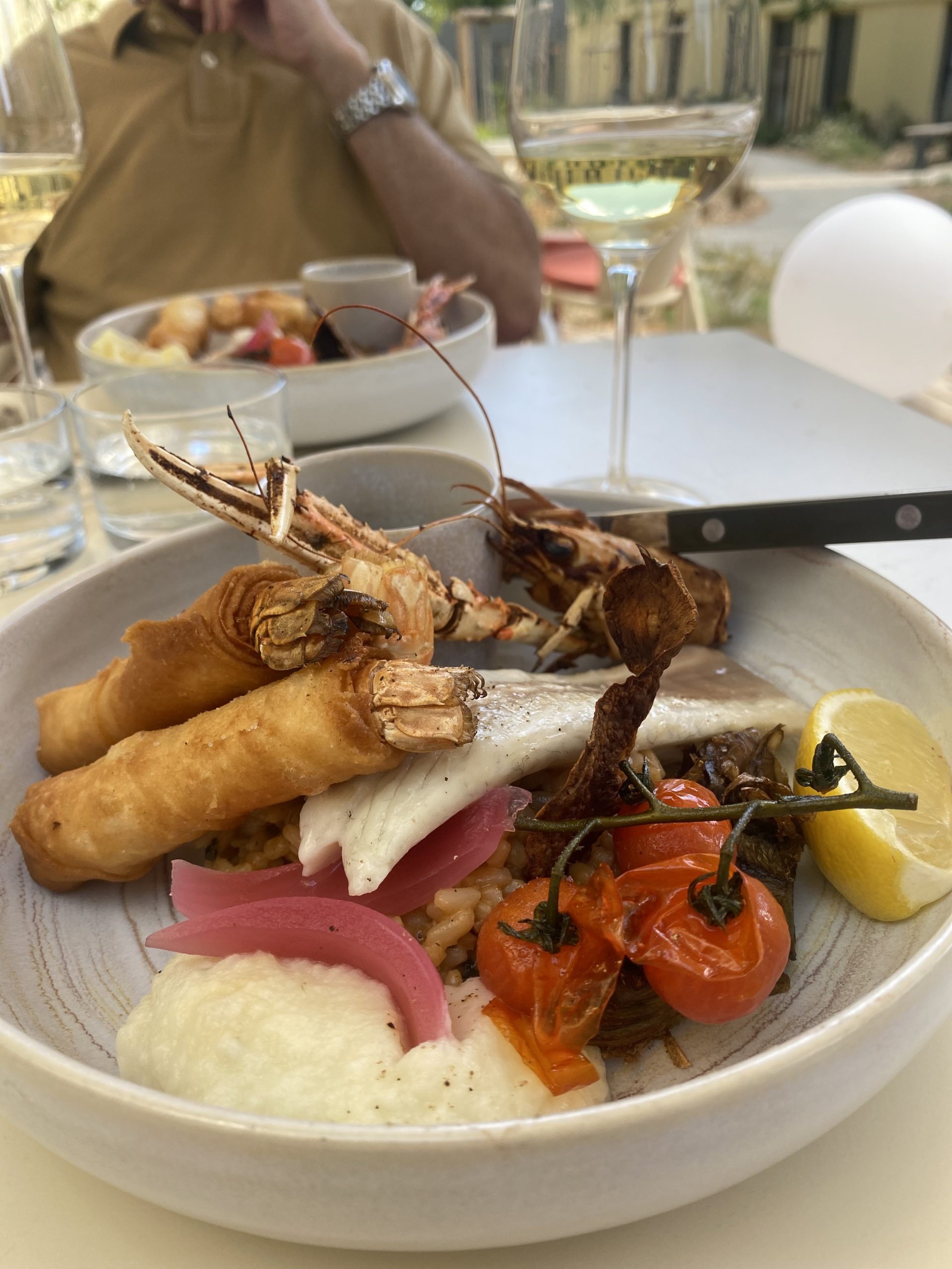 C’était le deal que Laurent à accepté avec d’autant plus de facilité qu’il correspondait à sa cuisine. La Méditerranée pour inspiration qu’elle soit de chez nous ou de plus loin…Grèce, Maroc, Italie, Espagne…On reconnait bien la griffe de Laurent qui a toujours privilégié les produits locaux, les produits frais, le fait maison. Ici aucune prétention, aucune complication, la cuisine est saine et savoureuse, c’est presque une cuisine familiale, avec le tour de main d’un chef, ce que l’on aime ! Chaque jour pendant l’été le “Buffet des entrées” propose des légumes, lentilles, chou fleur, poivrons grillés, taboulé, gaspacho de concombres…