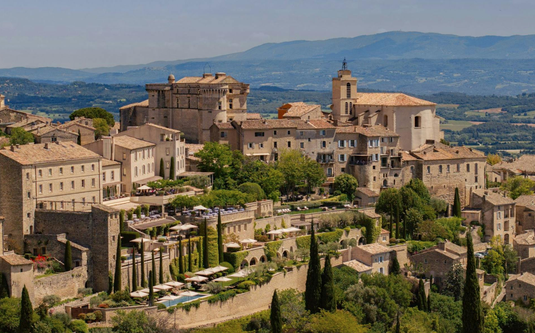 AIRELLES GORDES LA BASTIDE – Un palace au coeur du Luberon. En surplomb du village classé de Gordes, suspendue au-dessus de la vallée du Luberon qui s’étire.