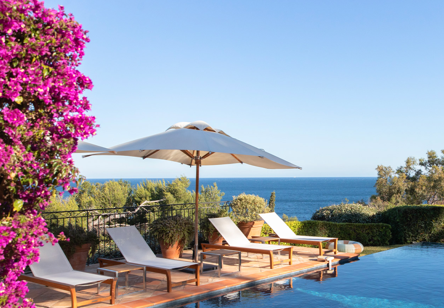 LA RESERVE RAMATUELLE HÔTEL SPA and VILLAS – Entre ciel & terre, mythe et légende. Loin la foule et du bruit de Saint-Tropez, du port et des plages mais avec vue pour un tête-à-tête majestueux avec la Méditerranée. Vaste domaine privé lové dans la garrigue provençale, bercé par le chant des cigales.