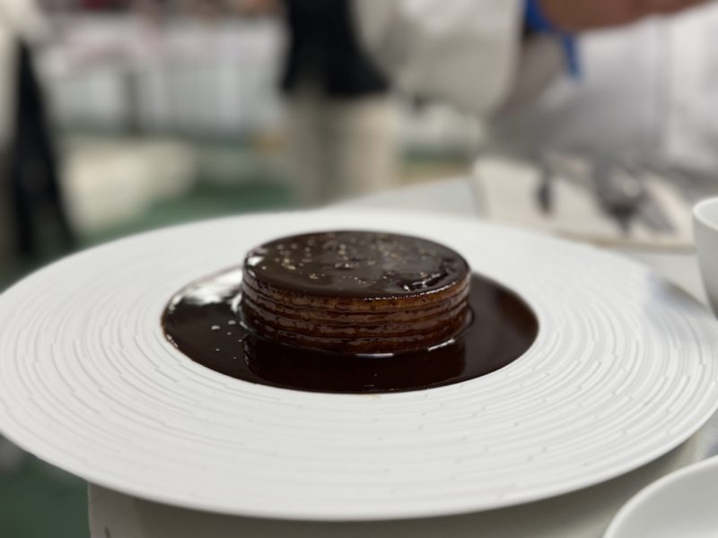 À la deuxième place, Edgar Laymet (Nomicos, Paris) a séduit par son approche classique et maîtrisée, saluée pour sa précision et sa justesse. Le chef a proposé un lièvre ficelé en trois temps, sur la chair, sur la barbe, puis ficelé cuit dans un torchon. Sa sauce nappante et équilibrée a conquis le jury et valu au jeune cuisinier le prix du Coup de cœur Food&Sense, distinguant l’élégance et la sincérité d’un plat sans esbroufe, fidèle à l’esprit des maîtres !