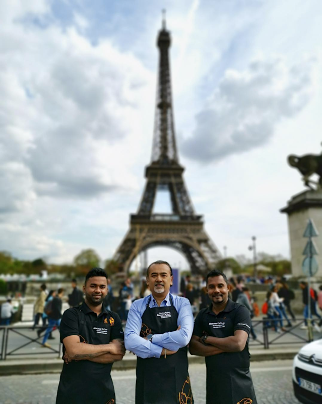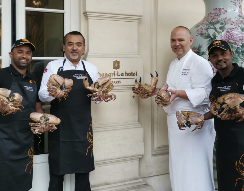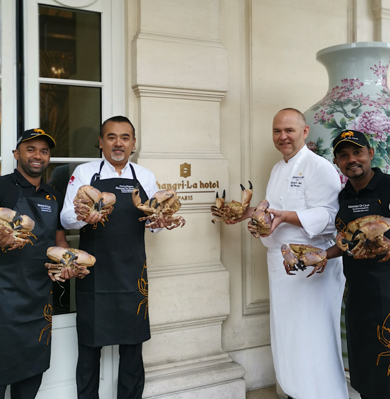 Le chef Dharshan Munidasa est arrivé à Paris avec ses collaborateurs, toute l’année il est invité à travers le monde pour réaliser sa cuisine autour du crabe. Au-delà de la gastronomie son offre culinaire est un vrai concept, c’est d’ailleurs pour ça qu’il est reconnu, son restaurant qui affiche complet sur plusieurs services attirer les touristes des passage au Sri Lanka. C’est la mise en scène, notamment avec les tabliers a enfiler pour déguster les crabes, mais aussi le service des crabes entiers sur table qui impressionne les amateurs.