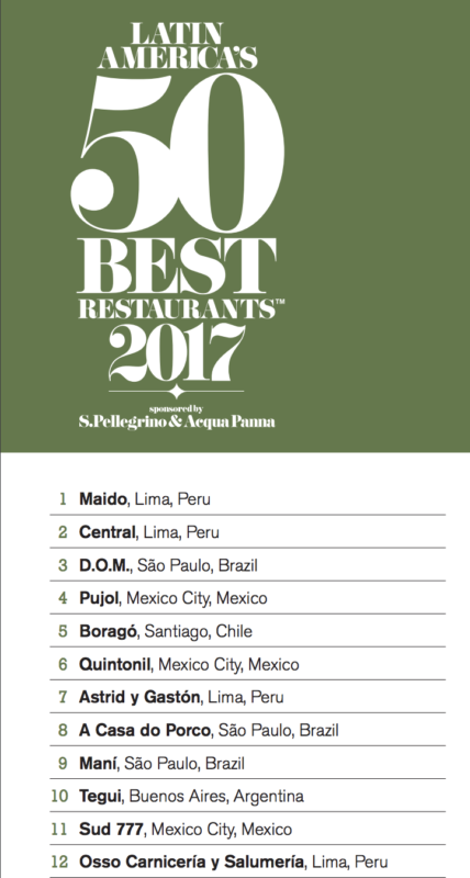 LA LISTE DES 50 MEILLEURES TABLES DU CONTINENT SUD AMÉRICAIN 2018 :