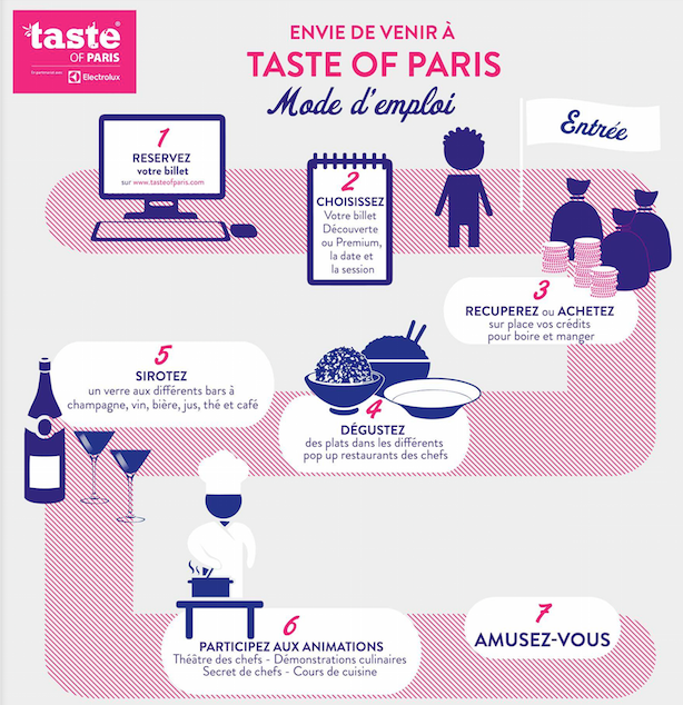 Le principe : partir à la découverte des chefs, chacun sera présent dans l’un des pop-up restaurants, conçus comme une ambassade de leurs établissements respectifs. Trois plats par nom seront soumis au public à des prix très compétitifs (de 5 à 12 euros). Le festival est ouvert comme un restaurant avec une session déjeuner (de 11h30 à 16h) et une session dîner de 19h à 23h30. C’est à chaque visiteur ensuite de se constituer son propre menu selon ses envies.