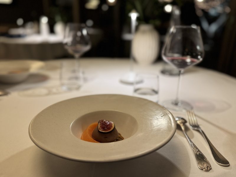 Baba imbibé romarin vanille, melon rôtie, reduction d’abricot, pollen et figue.