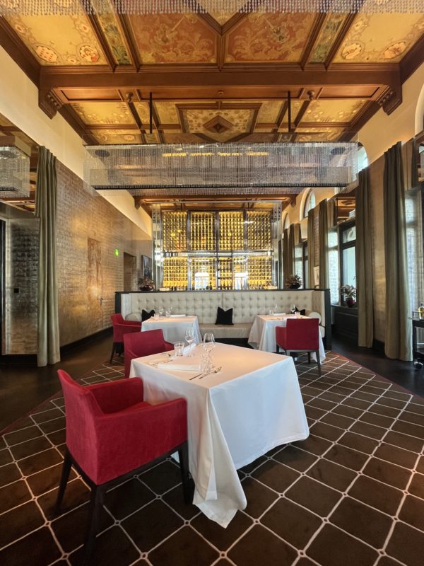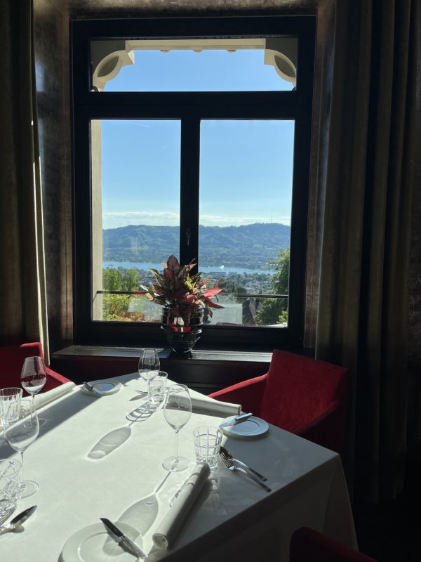 On dit souvent que la salle, dans un restaurant, fait une grande partie du repas. Au The Restaurant by Heiko, au sein de l’hôtel The Dolder Grand, cela se confirme plus que jamais. Certes, la vue sur Zurich est spectaculaire — une étendue de lumières qui se déploie entre le lac et la ville — et le service aux petits soins pourrait à lui seul justifier la réservation. Mais en entrant, ce qui frappe véritablement est autre chose.