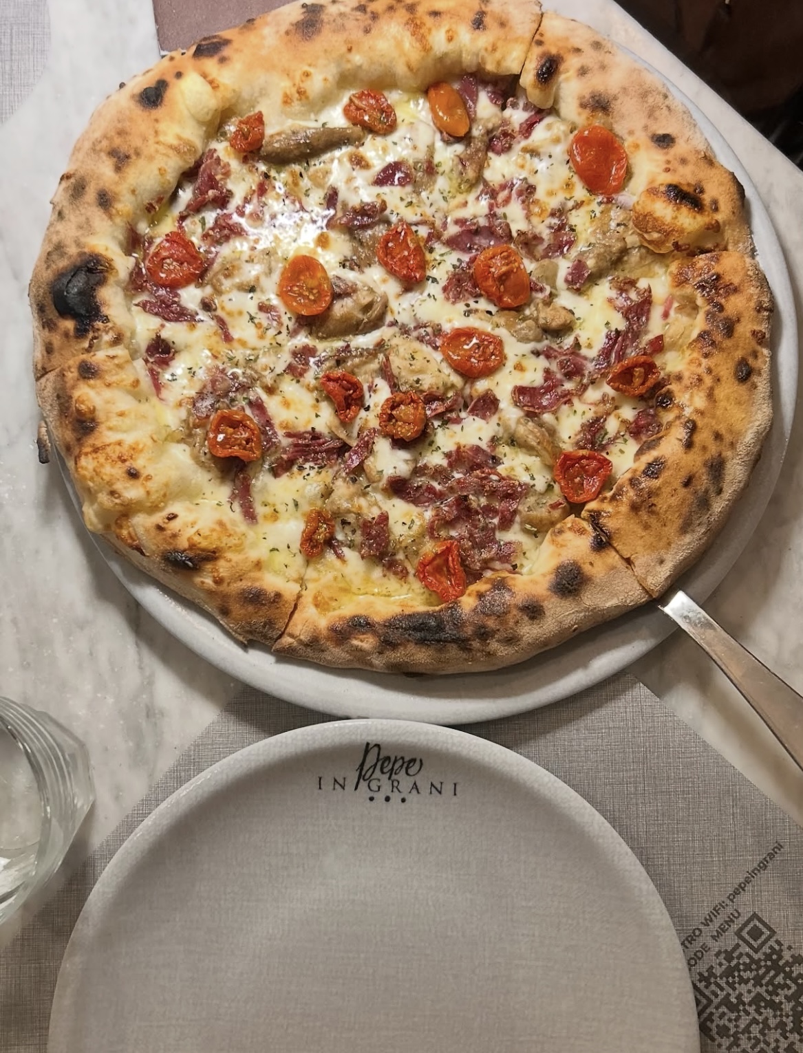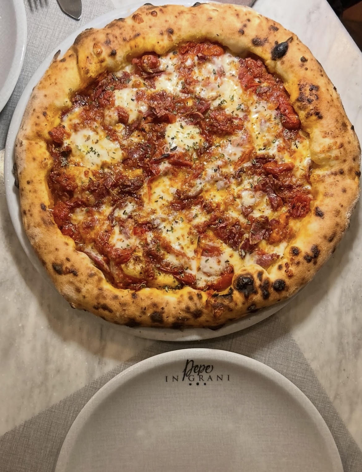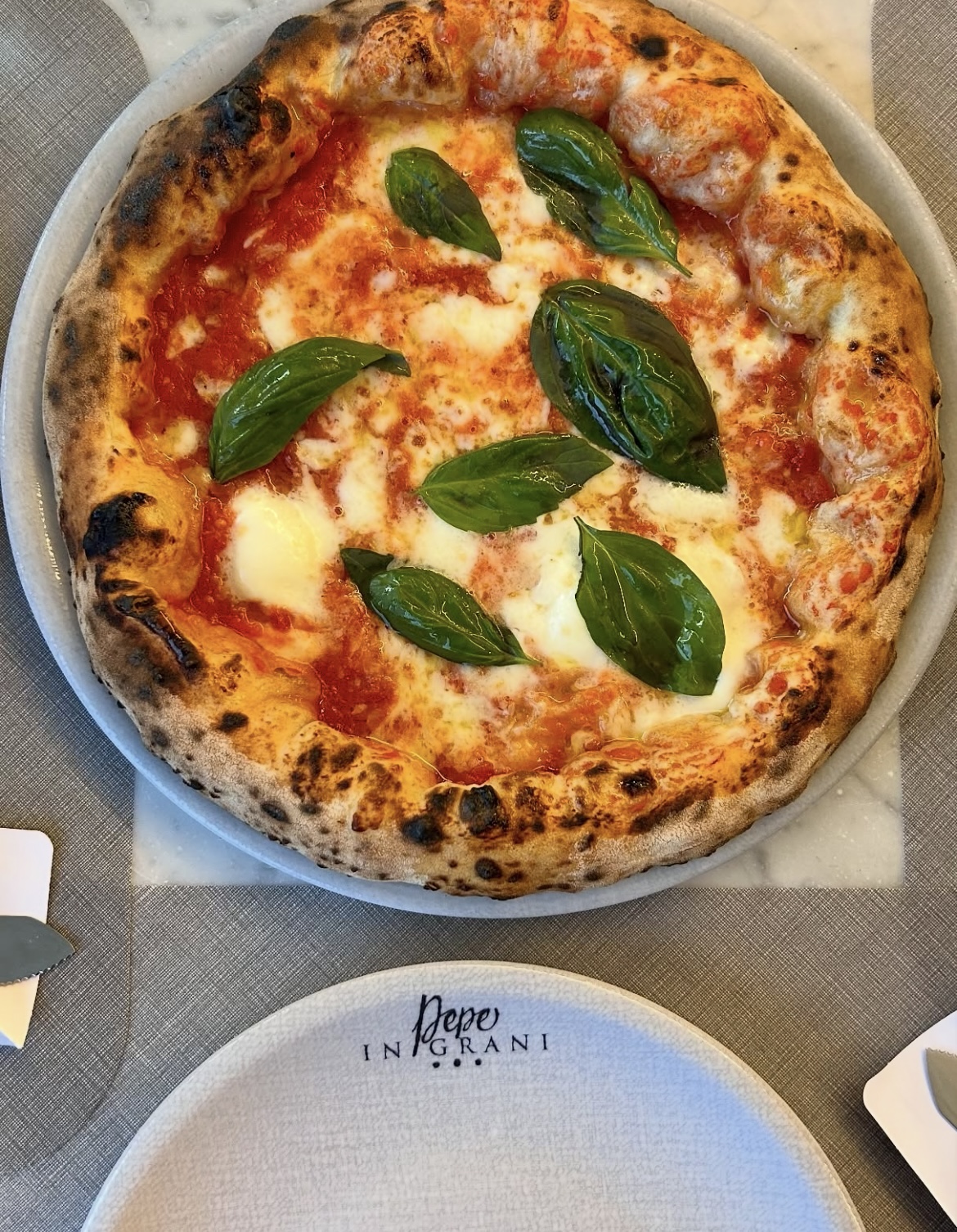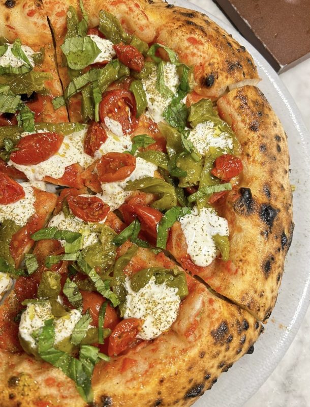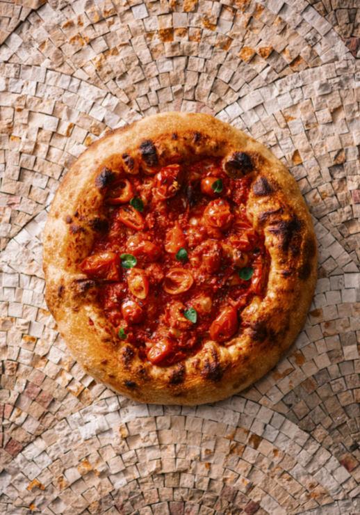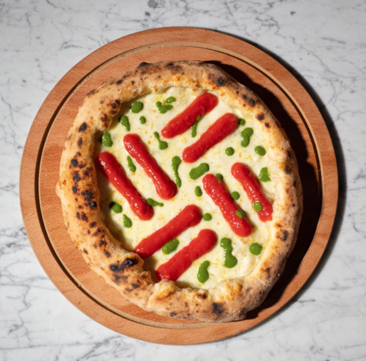 la fameuse Margherita Sbagliata de Pepe, qui réimagine de manière ludique la pizza classique, La Pizza a Libretto, simple et rustique, symbole de l’authenticité napolitaine, la Memento, une pizza végétale subtile à la crème de pois chiches.