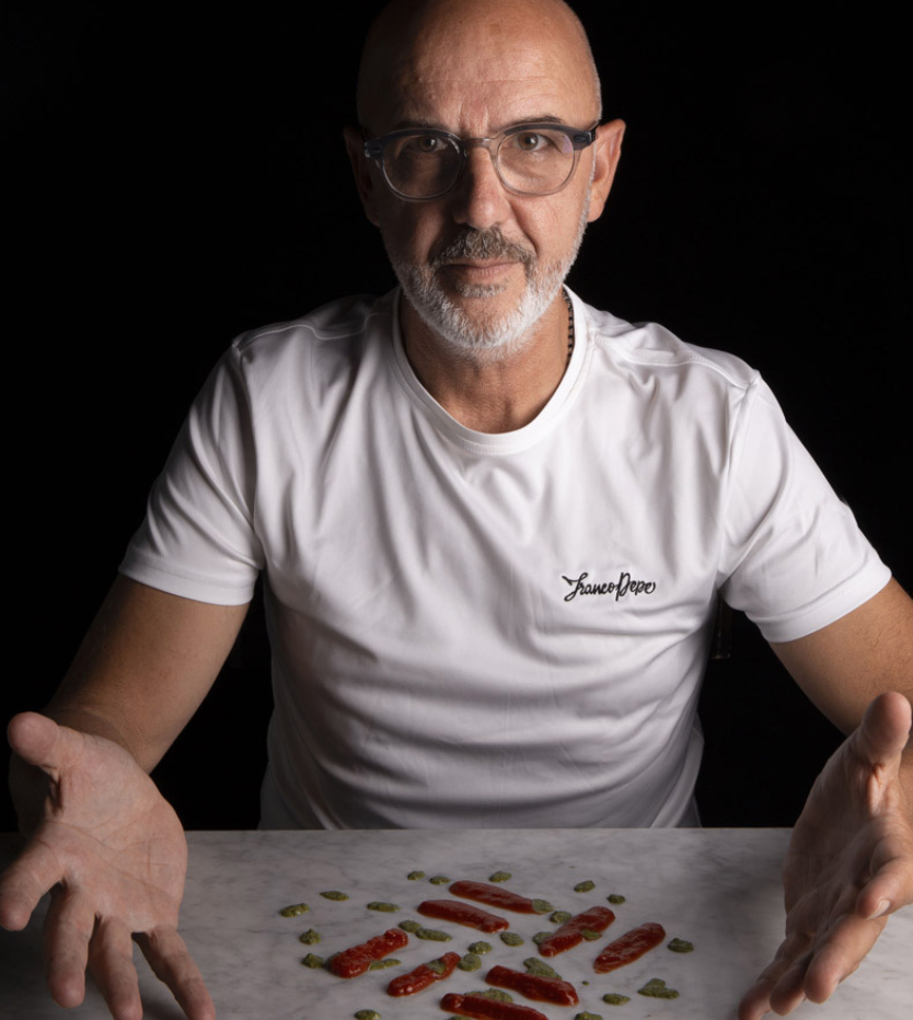 FRANCO PEPE – MAITRE PIZZAIOLO – MEILLEUR PIZZAIOLO AU MONDE – Tout commence en 1900, à Caiazzo où la famille de boulangers passionnés possède un four et une boutique, façonne un délicieux pain artisanal et partage ses braises avec les villageois qui viennent cuire leurs rôtis et autres. En plus du pain le grand-père vend des pizzas, fabriquées le matin avec le reste de la pâte de la veille. Les clients se multiplient autant que les pizzas proposées avec des soupes, des sardines, de la charcuterie. De la cuisine sur le pouce.. Un des fils, Stefano tombe amoureux de Maria, ils seront les parents de Franco. ils ouvrent une pizzeria, une vraie, qui attire les clients d’ici et de partout. Le four chauffe nuit et jour, il cuit des pizzas renommées mais aussi des pâtes, des aubergines, des viandes et des poulets. Toute la famille s’affaire dans ce commerce, le bonheur règne. Les parents rêvent d’études supérieurs pour leurs enfants, Franco devient professeur de gym, Nino compatible, Massimiliano designer, Franco enseignant. Mais aucun ne lâche son rêve dans l’entreprise familiale. Franco rejoint son père dont il admire la créativité la sensibilité. Le père meurt. Querelles familiales, désaccord. Révolution dans la famille et dans la vie de Franco. il prend le chemin de la pizzeria, avec en mémoire les recettes malheureusement non écrites et les gestes de son père mais aussi une question existentielle : est-il ou non pizzaïolo ? Il va s’approprier l’héritage de la pizza paternelle tout en l’enrichissant de créativité, simplicité, précision et goûts tout en développant une fascination pour la gastronomie. 2003 une célèbre journaliste franchit les portes de la pizzeria et commande des pizzas pour l’inauguration d’un établissement vinicole… les récompensent pleuvent, clients, chefs, journalistes, producteurs affluent. La petite pizzeria du petit village connait la gloire et la renommée. Franco, adoubé par le chef Colonna, pénètre dans le monde de la haute gastronomie. Ils travaillent ensemble et enrichissent mutuellement leur savoir-faire. Franco s’éloigne quelque peu de la pizzeria familiale que ses frères continuent à faire tourner. Il veut créer ses propres pizzas, faire quelque chose qui appartient qu’à lui, et élever la pizza dans le monde de la gastronomie, transmettre et partager, changer. il explore les farines anciennes, affine ses méthodes de fermentation, crée une pâte signature.Il avance seul, imagine sa pizzeria, aidé par ses rencontres et ses connaissances. Il veut ouvrir son « slow restaurant ». Où ? A Caiazzo évidemment, dans une bâtisse abandonnée. De travaux en travaux, le rêe devient réalité. Hasard ou signe du destin, au cours des travaux est découvert un four emplyé pour cuire… des hosties ! La pizzeria de luxe « Pepe in grani » ouvre en 2012… Cette pizzeria a rapidement acquis une renommée internationale grâce à ses pizzas à la fois traditionnelles et novatrices, préparées à partir d’ingrédients locaux de grande qualité et d’une pâte tout à fait unique. Franco Pepe accueille 400 clients et prépare 800 pizzas par jour. Sa popularité est née d’un article de Jonathan Gold, un gastronome lauréat du prix Pulitzer, qui a écrit dans l’édition américaine du magazine Food & Wine : « J’ai probablement mangé la meilleure pizza du monde chez Franco Pepe ».