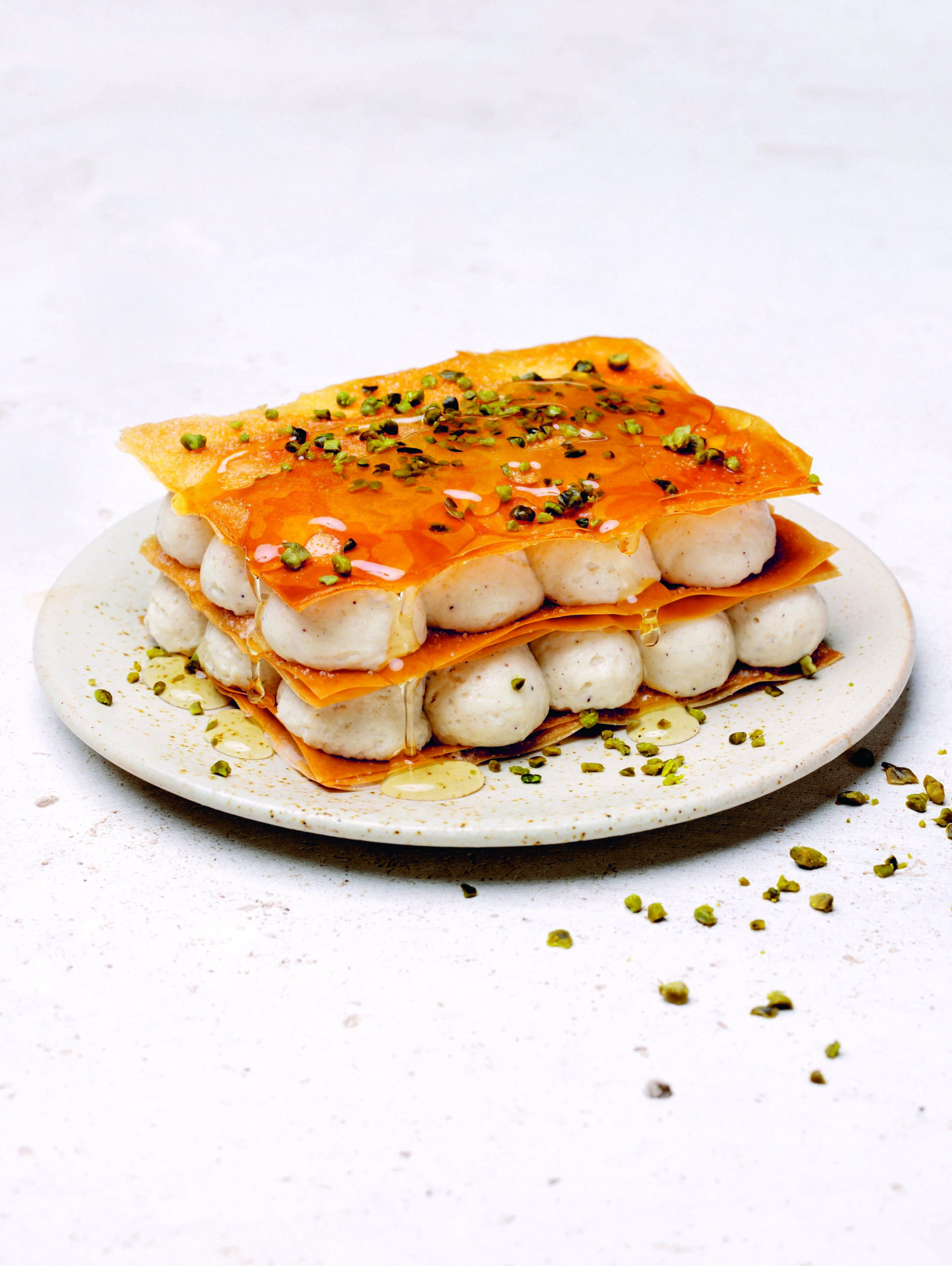 Dina Nikolaou crée également un pont entre les traditions grecques et les classiques français, utilisant la pâte filo pour revisiter des classiques comme la quiche lorraine, la pizza ou le mille-feuille.