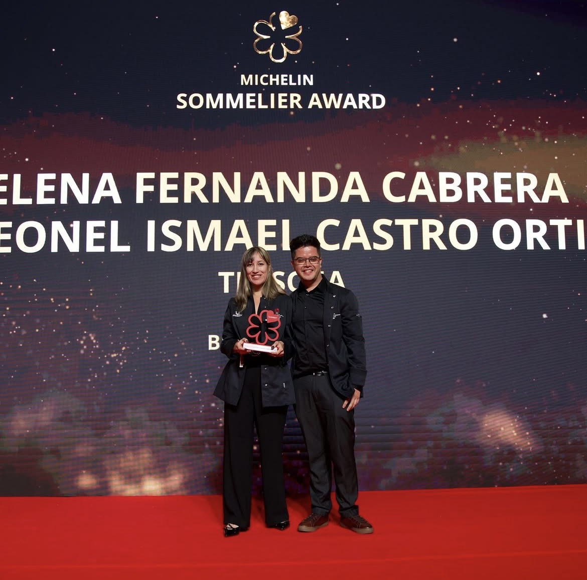Le Prix MICHELIN du Sommelier 2025 a été décerné à Elena Fernanda Cabrera et Leonel Ismael Castro Ortiz (Trescha, Buenos Aires) pour leur capacité exceptionnelle à harmoniser les mets et les vins dans une expérience culinaire inédite. Leur expertise en matière de vins, allant des champagnes sélectionnés aux vins argentins biologiques, fait de leur cave un lieu d’exception où chaque accord est une révélation.