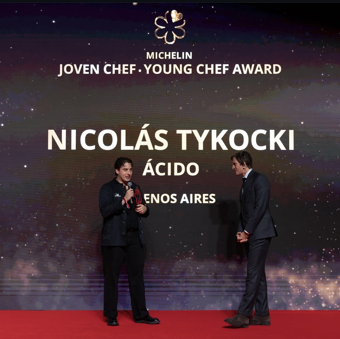 Le Prix MICHELIN du Chef Jeune 2025 récompense Nicolás Tykocki d’Ácido (Buenos Aires) pour sa cuisine audacieuse et avant-gardiste. À seulement 27 ans, ce chef se distingue par sa capacité à briser les conventions avec des plats inspirés des cuisines du monde entier, où l’acidité est mise à l’honneur, créant une expérience gastronomique innovante et mémorable.