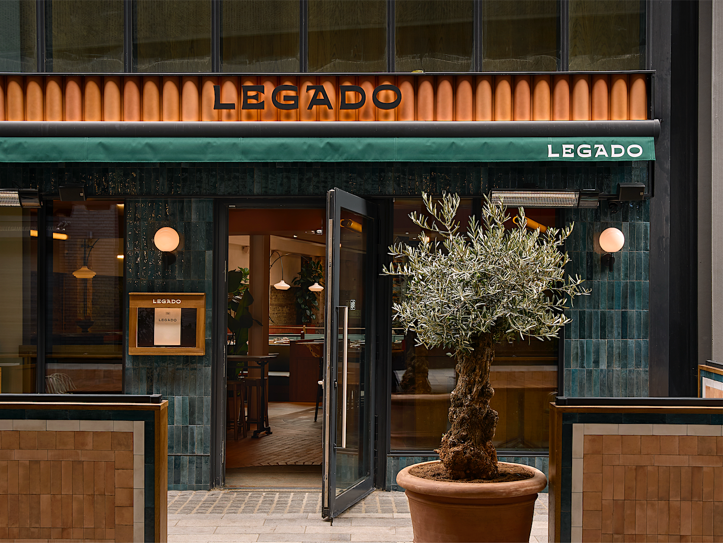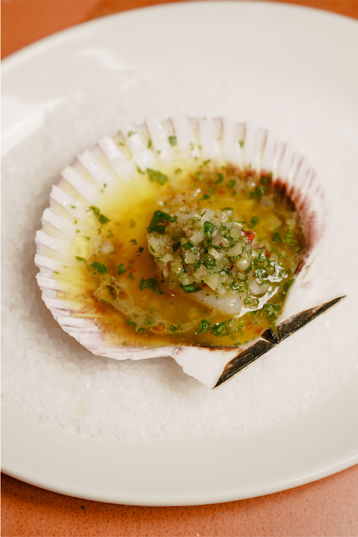 Dix-neuf heures tapantes, un mardi soir à Shoreditch ; le Legado se dessine sous une nuit déjà tombée, au-dessous d’un vaste pont en béton, entre deux des avenues principales de ce quartier du East London. Si de l’extérieur, l’adresse semble un peu perdue au milieu de cette zone intermédiaire (en réalité animée en journée, car se situant au pied d’un nouveau complexe de bureaux), le doute se dissipe à peine entrés. La joie semble en effet planer sur ce restaurant animé, aux tons contemporains, aux proportions longues, dont la forme rectangulaire abrite environ 70 couverts. Du comptoir longitudinal à droite, colonne vertébrale du lieu, émane une énergie fraîche, concentrée, incarnée notamment par la chef Nieves Barragán Mohacho, qui s’active de poste en poste. En salle, l’ambiance est bonne ; et les tables, pleines. En à peine un mois d’ouverture, le Legado semble avoir déjà trouvé son public.