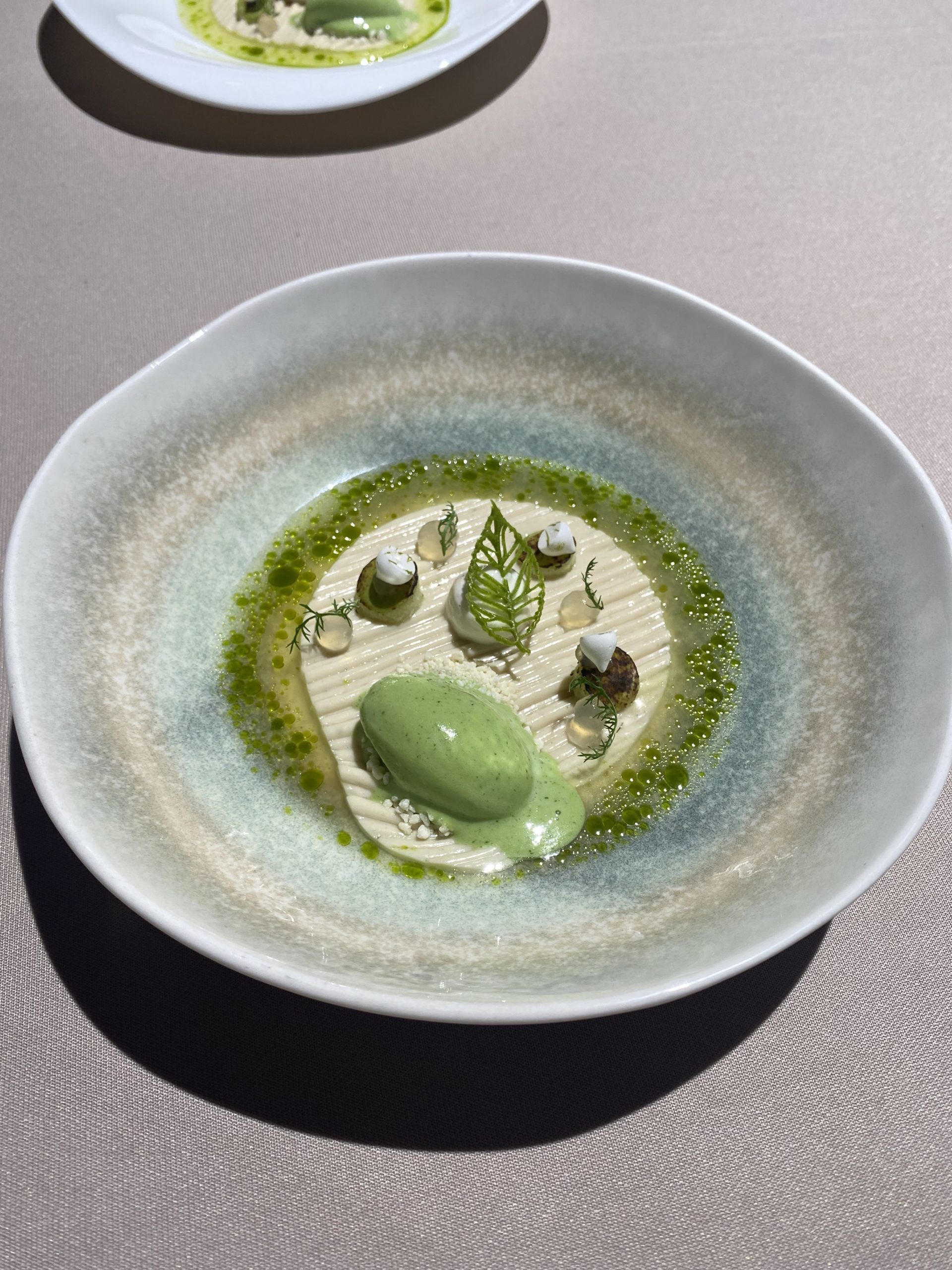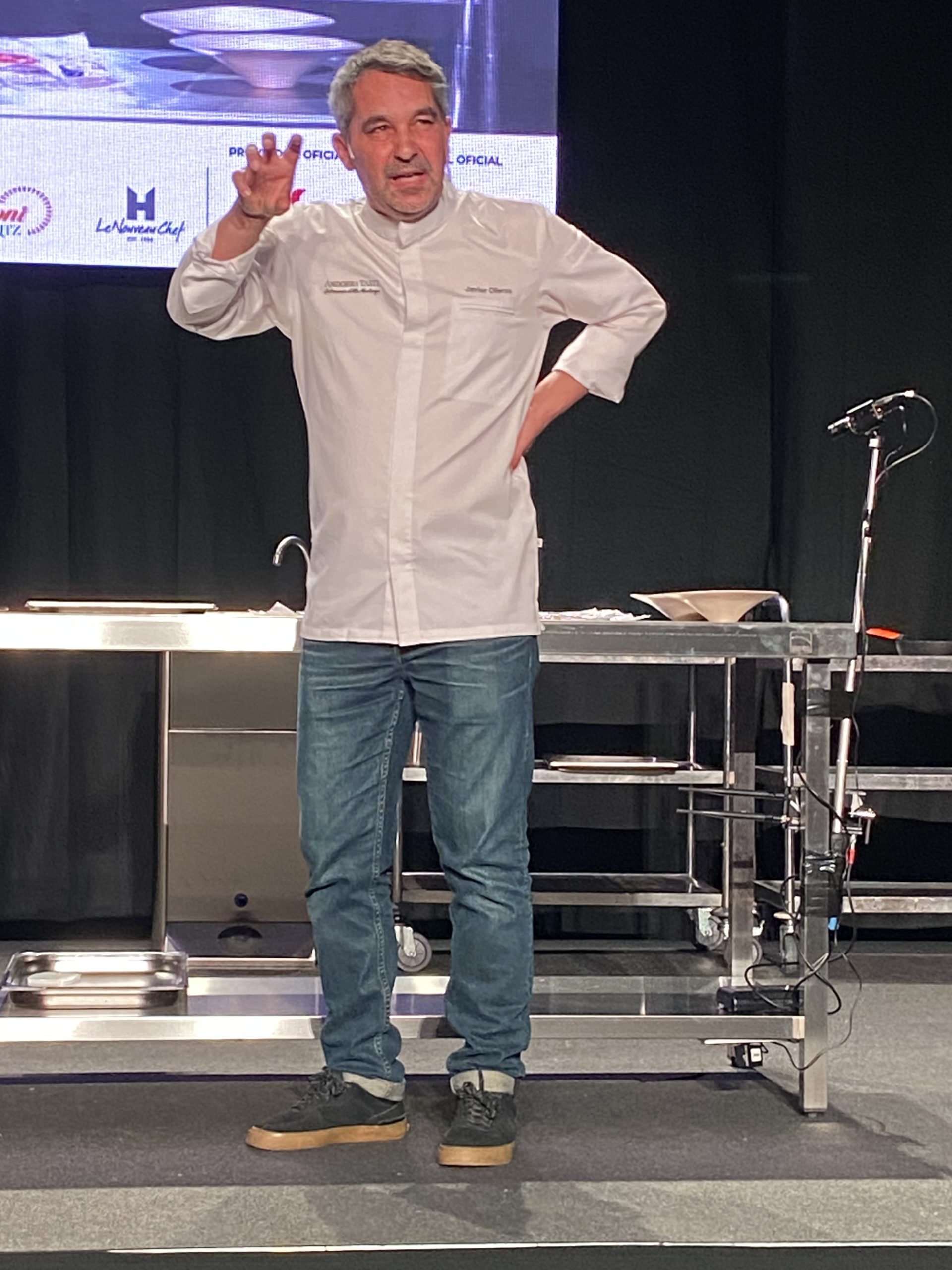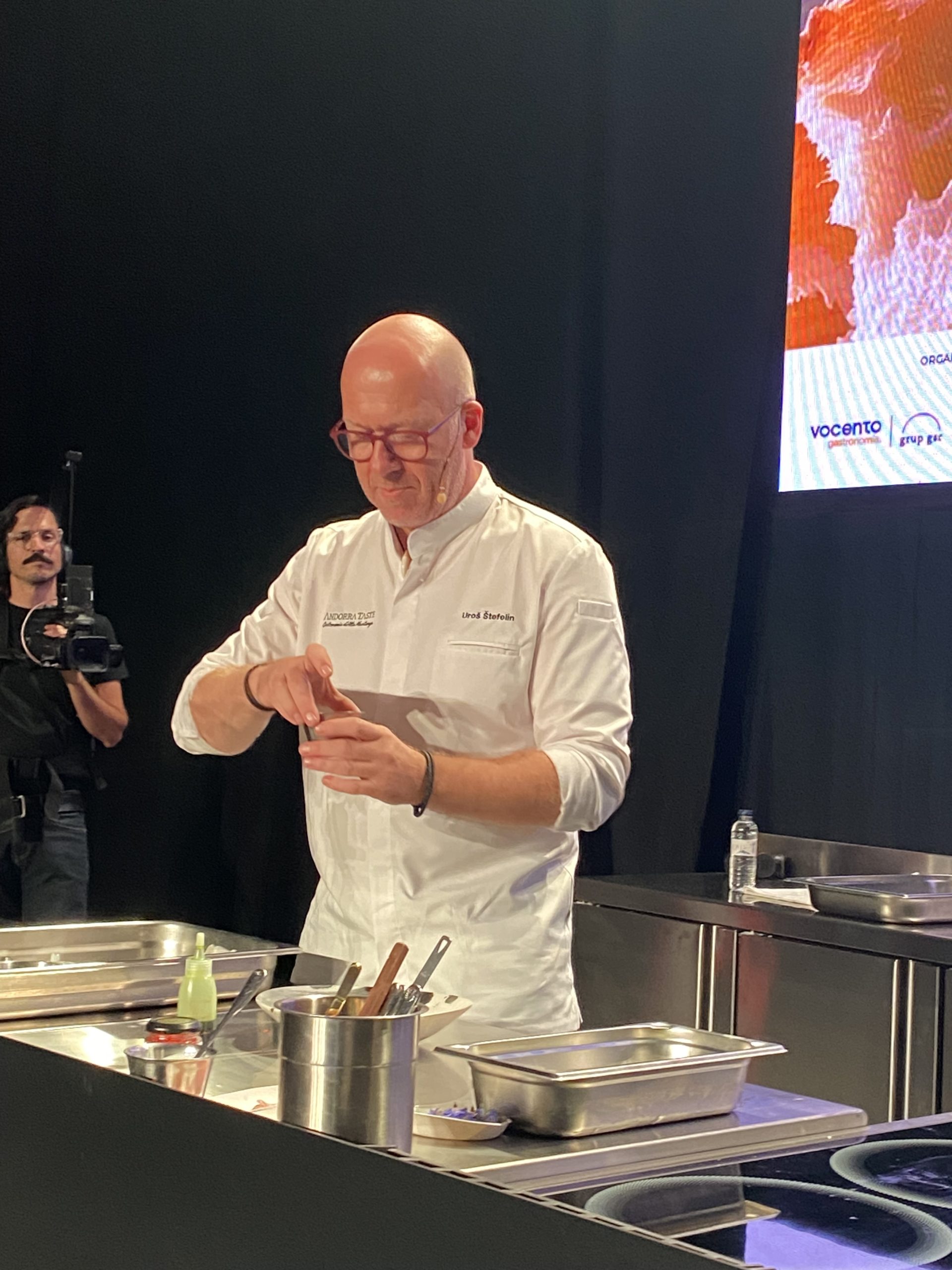 Aux pianos de cette soirée… Nandu Jubany, chef du Diamant, Daduna Ghlonti Cheffe de Skio en Géorgie, Sergio Sanz, chef du Lavedàn en Espagne, Uros Stefelin Chef Hisa Linhart 1*rouge 1* verte en Slovénie, Luis Lera chef du Lera 1*rouge 1* verte en Espagne, Oriol Castro, Eduard Xatruch et Mateu Casañas 3* rouge au Disfrutar à Barcelone Meilleur restaurant du monde en 2024