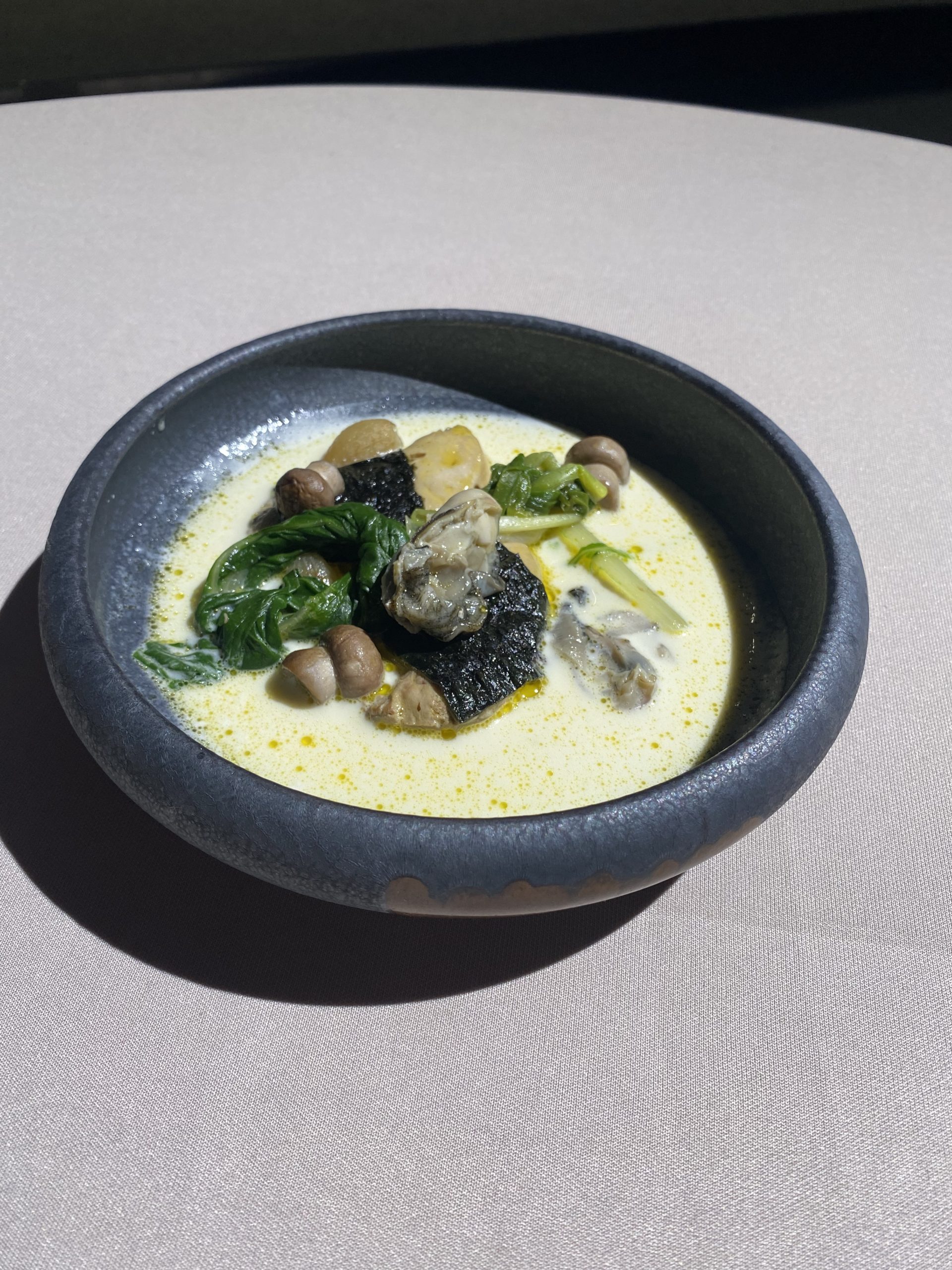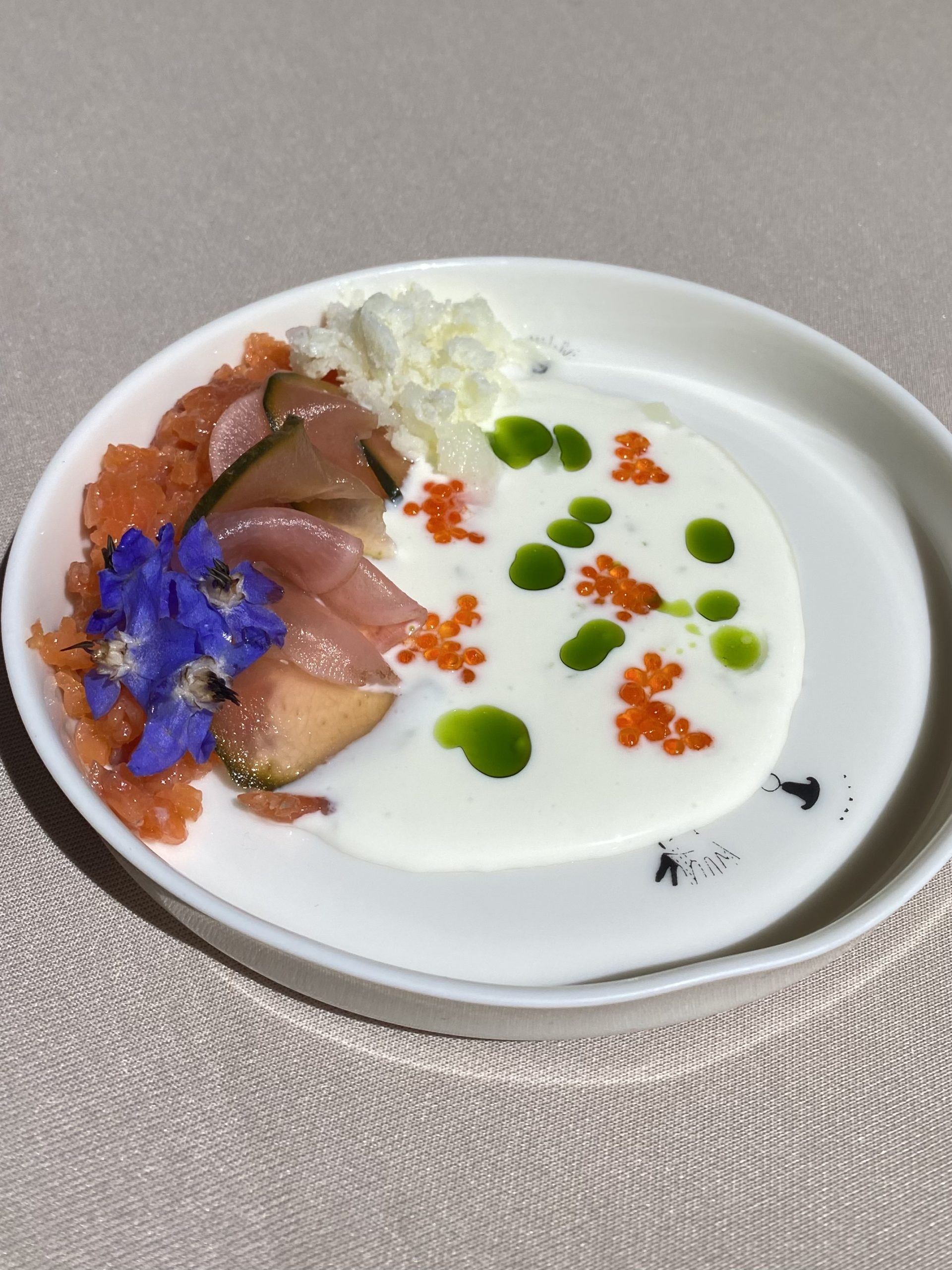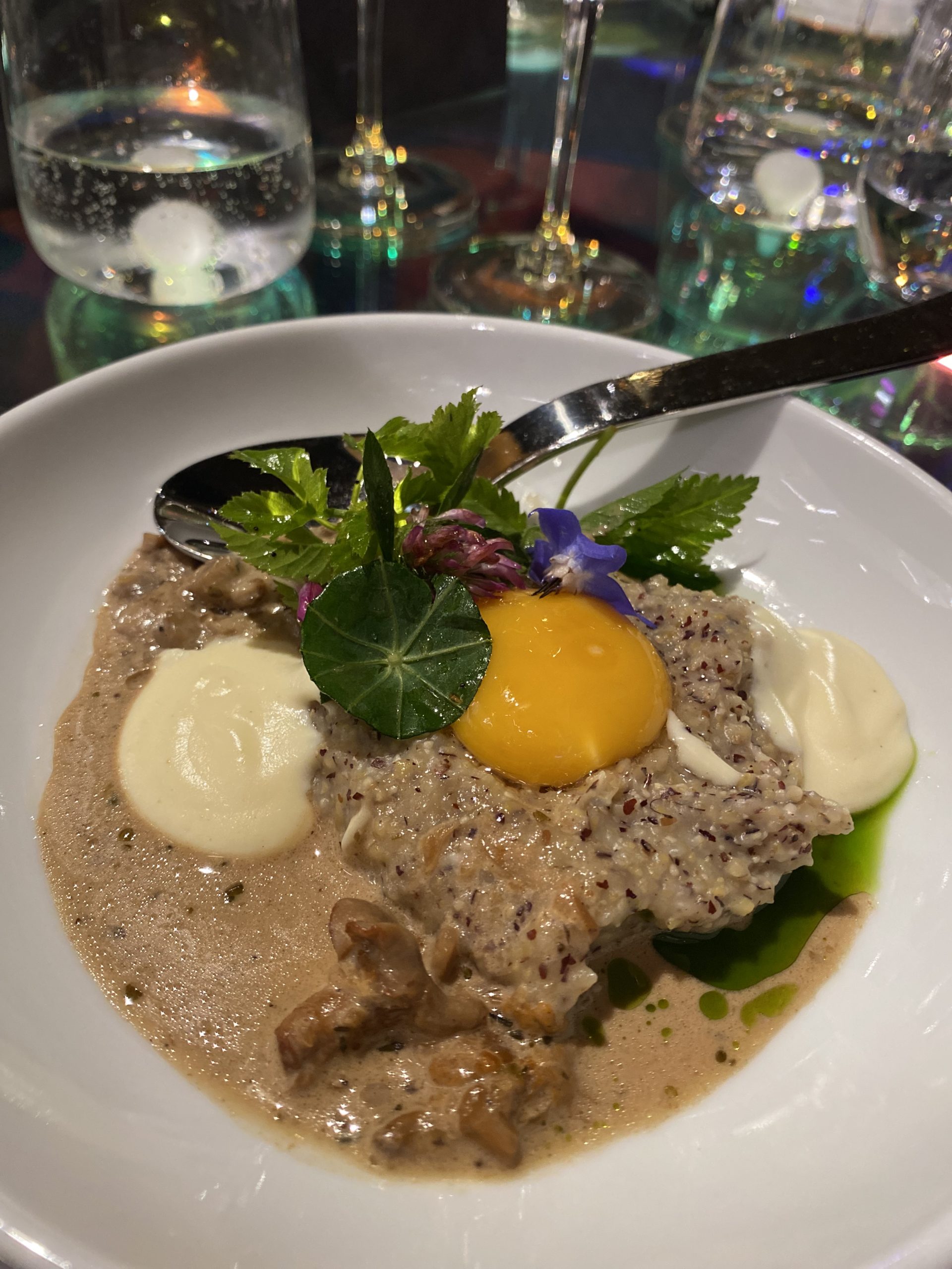 Aux pianos de cette soirée… Nandu Jubany, chef du Diamant, Daduna Ghlonti Cheffe de Skio en Géorgie, Sergio Sanz, chef du Lavedàn en Espagne, Uros Stefelin Chef Hisa Linhart 1*rouge 1* verte en Slovénie, Luis Lera chef du Lera 1*rouge 1* verte en Espagne, Oriol Castro, Eduard Xatruch et Mateu Casañas 3* rouge au Disfrutar à Barcelone Meilleur restaurant du monde en 2024