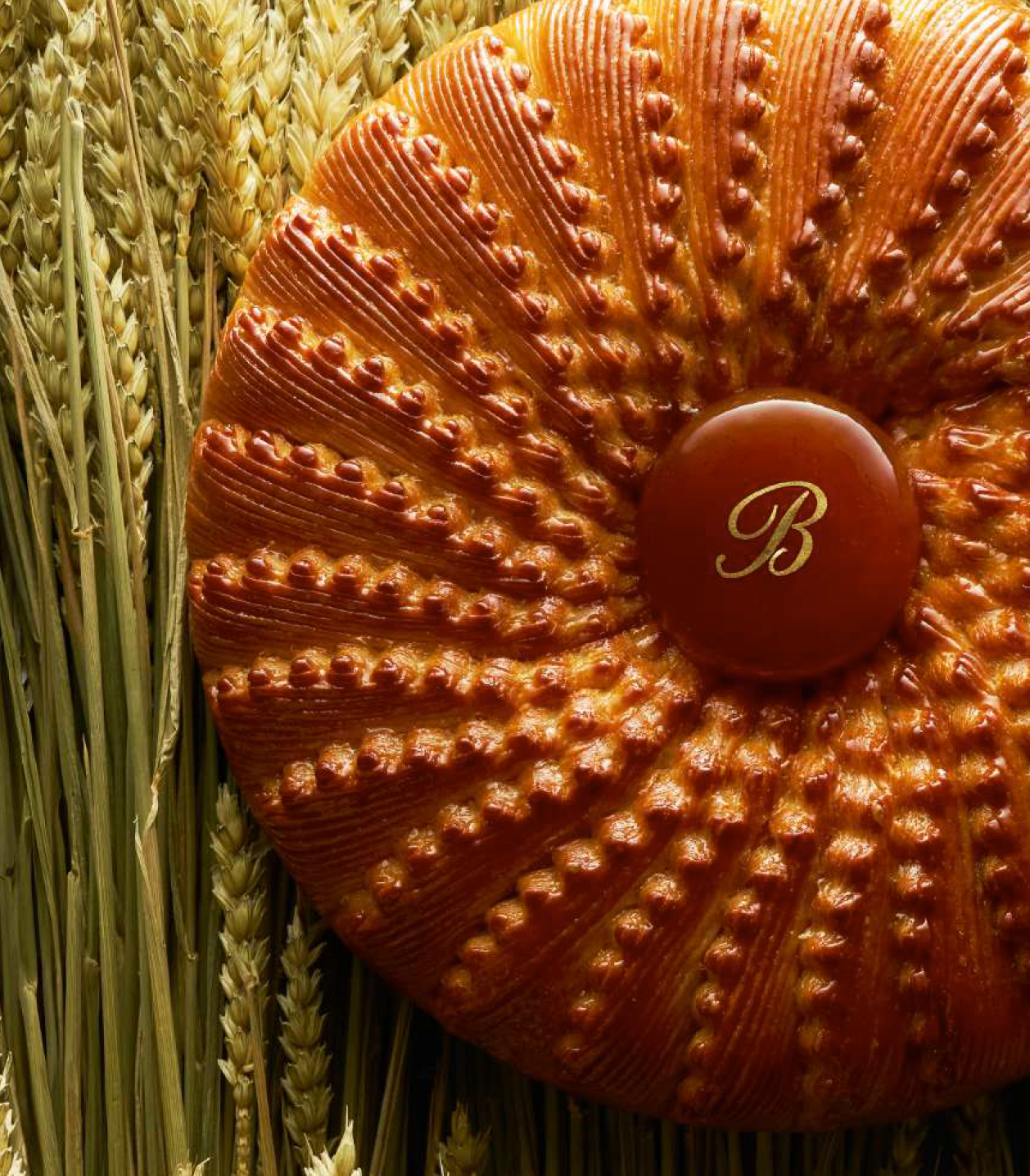 Maxence Barbot, avec audace, revisite la tradition en croisant deux classiques de la pâtisserie : la galette à la frangipane et le chausson aux pommes. La galette signature du Bristol Paris se compose de 27 pétales de brioche feuilletée, délicatement disposés en rosace. En son coeur, une préparation subtilement régressive : pommes caramélisées au cidre et au jus de pomme, relevées de vanille, déposées sur une frangipane aux amandes parfumée de calvados et de rhum. Un hommage raffiné aux grands savoir-faire français.