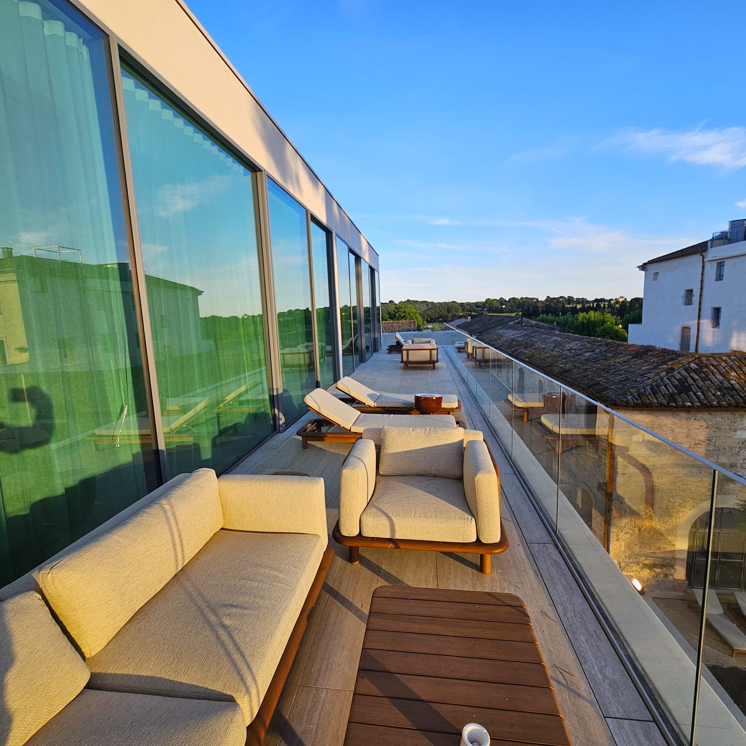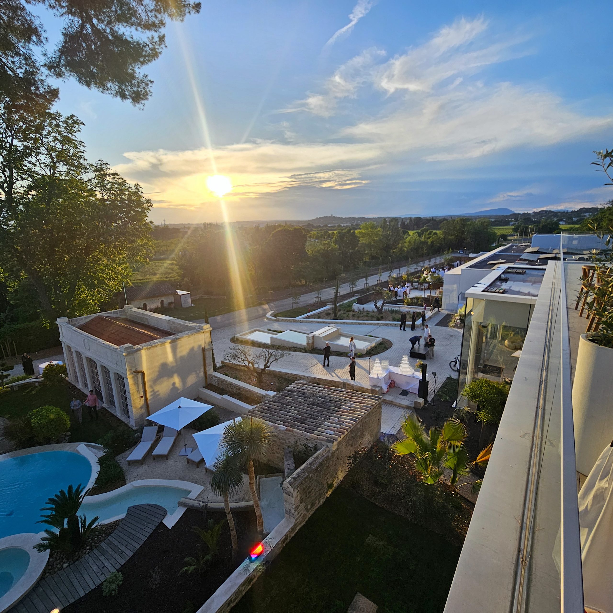 Par une jolie soirée de printemps aux portes de Montpellier, à Castelnau-le-Lez exactement, inauguration de l’extension du Domaine de Verchant. Il y a le soleil qui se couche doucement, le ciel bleu, de la musique, des gens heureux. Un chemin qui serpente entre vignes parfaitement alignées et cyprès pointus qui s’élancent vers le ciel, un majestueux portail, une allée de jeunes tilleuls qui ont remplacé les vieux marronniers fatigués… Lever de rideau théâtral sur le Domaine de VERCHANT, ce patrimoine architectural, Relais & Châteaux, au coeur de la campagne.