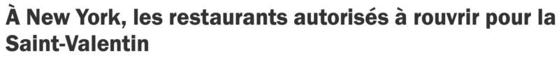 Dans la ville américaine la plus touchée par la première vague du coronavirus, le gouverneur de New York a surpris tout le monde cette semaine en autorisant les restaurants à rouvrir, à un quart de leurs capacités, pour la Saint-Valentin.