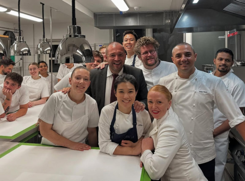 Le premier chapitre s’est déroulé les 16 et 17 août à Jordnær, Copenhague, aux côtés d’Eric Vildgaard. Avec un passage à table remarqué du chef et ambassadeur Guillaume Gomez ! Dans l’épure nordique du restaurant trois étoiles, les deux chefs prolongent une complicité déjà éprouvée à Singapour en 2023. Entre pureté scandinave et élégance française, cette ouverture donne le ton : celui d’une conversation culinaire qui dépasse les frontières.