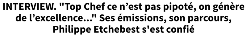 La franchise, la sincérité et, en fait, la gentillesse (oui, oui) du bonhomme nous ont fait passer un bon moment et donnent envie d’aller manger chez lui à Bordeaux, si possible un 21 juin car Philippe Etchebest joue aussi de la musique devant son restaurant ce soir-là. Une bête de scène, une bête sur le ring et, évidemment, une bête en cuisine. Cet homme-là est hyperactif et il nous en parle…
