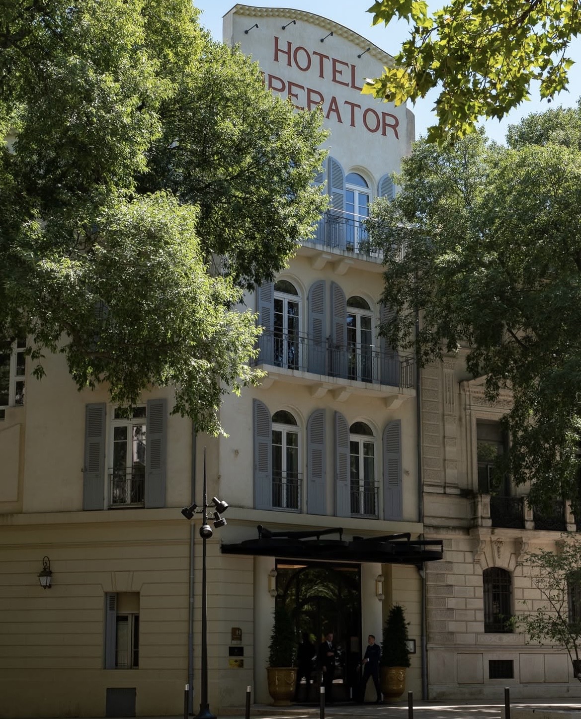 DÉCOR DU JOUR – Nimes, Maison Albar – L’Imperator – Un cadre de rêve, royaume des cigales et de la lumière. Les rayons de soleil caressent, dorent les pierres du jardin de l’hôtel Maison Albar – L’Imperator.