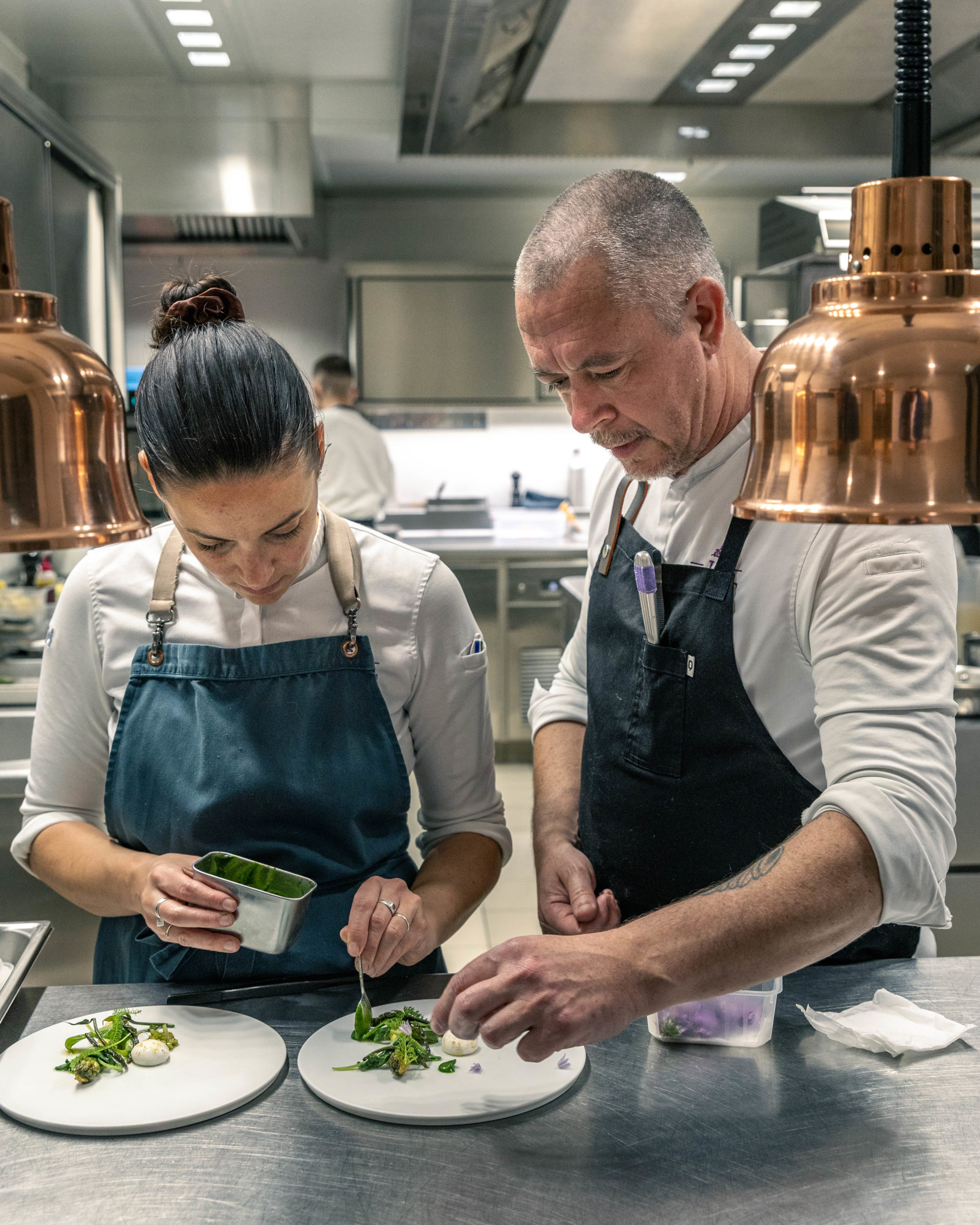 Originaire de Normandie, Justine Viano découvre la restauration via un BEP puis un Bac Pro hôtellerie, avant de rejoindre Paris et l’événementiel, où elle apprend rythme, rigueur et gestion du service. Très vite, les expériences s’enchaînent : en food-truck, puis avec l’ouverture d’un bistrot dans la Capitale. Le Sud suivra, avec le Couvent des Minimes puis sa rencontre avec Stephan Paroche, avant un départ décisif à deux à la vie comme aux fourneaux, pour le Vietnam, où le couple s’imprègne pendant un an et demi d’une cuisine du vivant, spontanée et végétale. Aujourd’hui, elle signe, toujours aux côtés de Stephan, la carte de la table de Calice, l’un des plus beaux restaurants de Béziers, adresse Art Déco devenue incontournable .