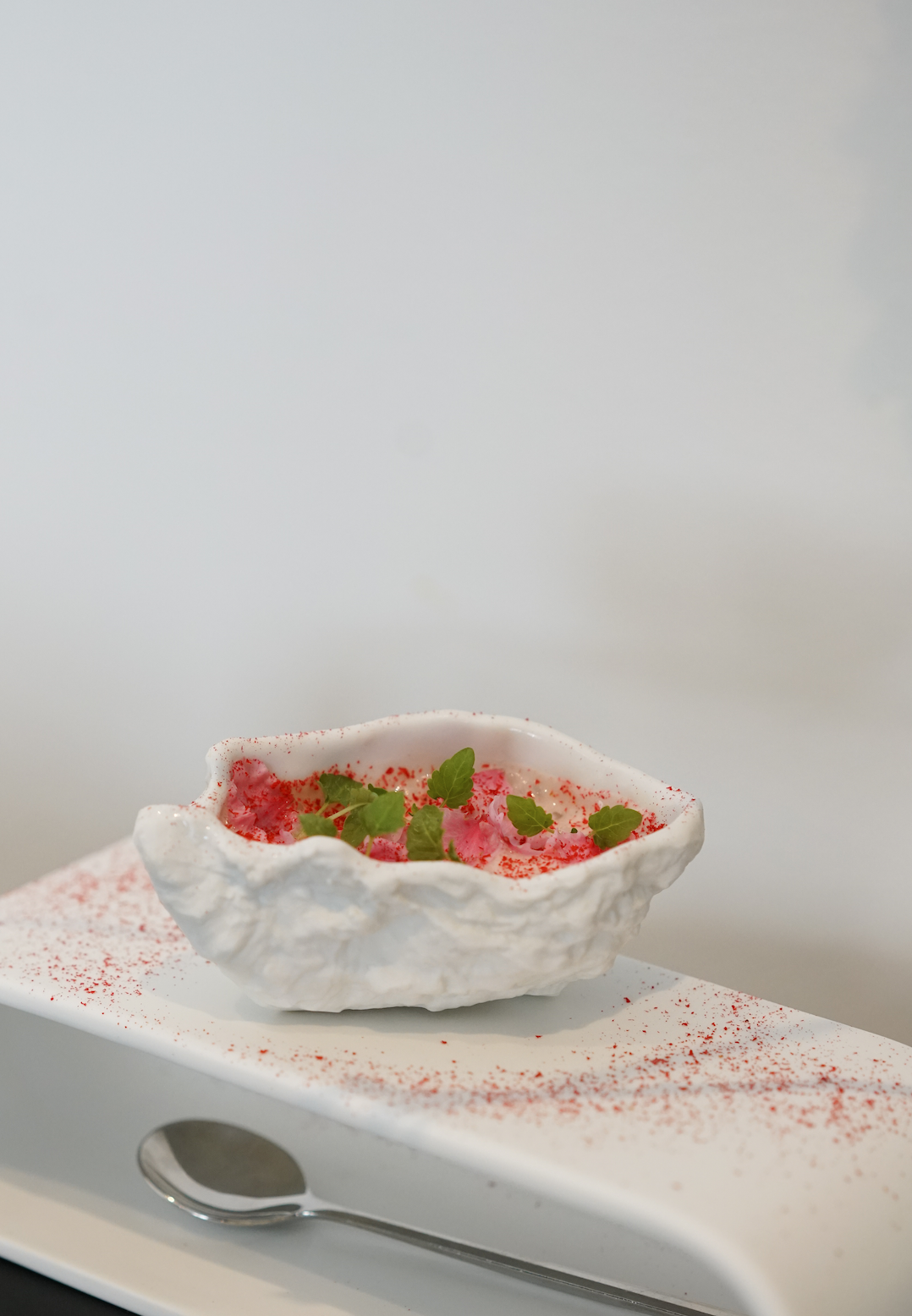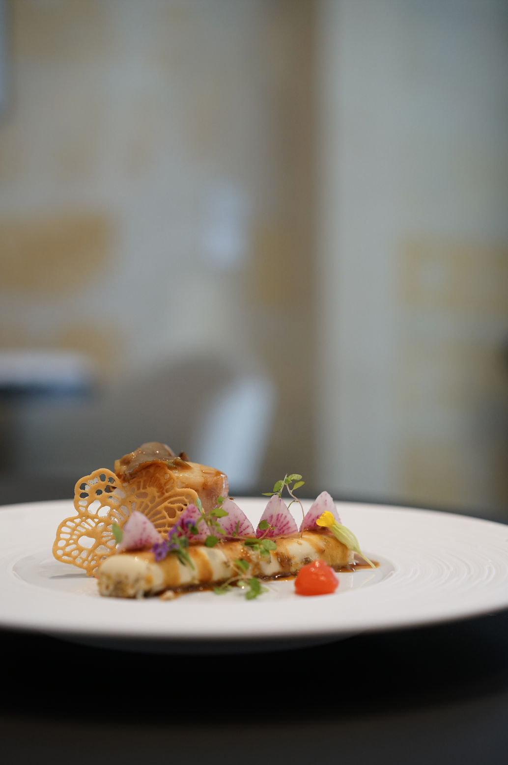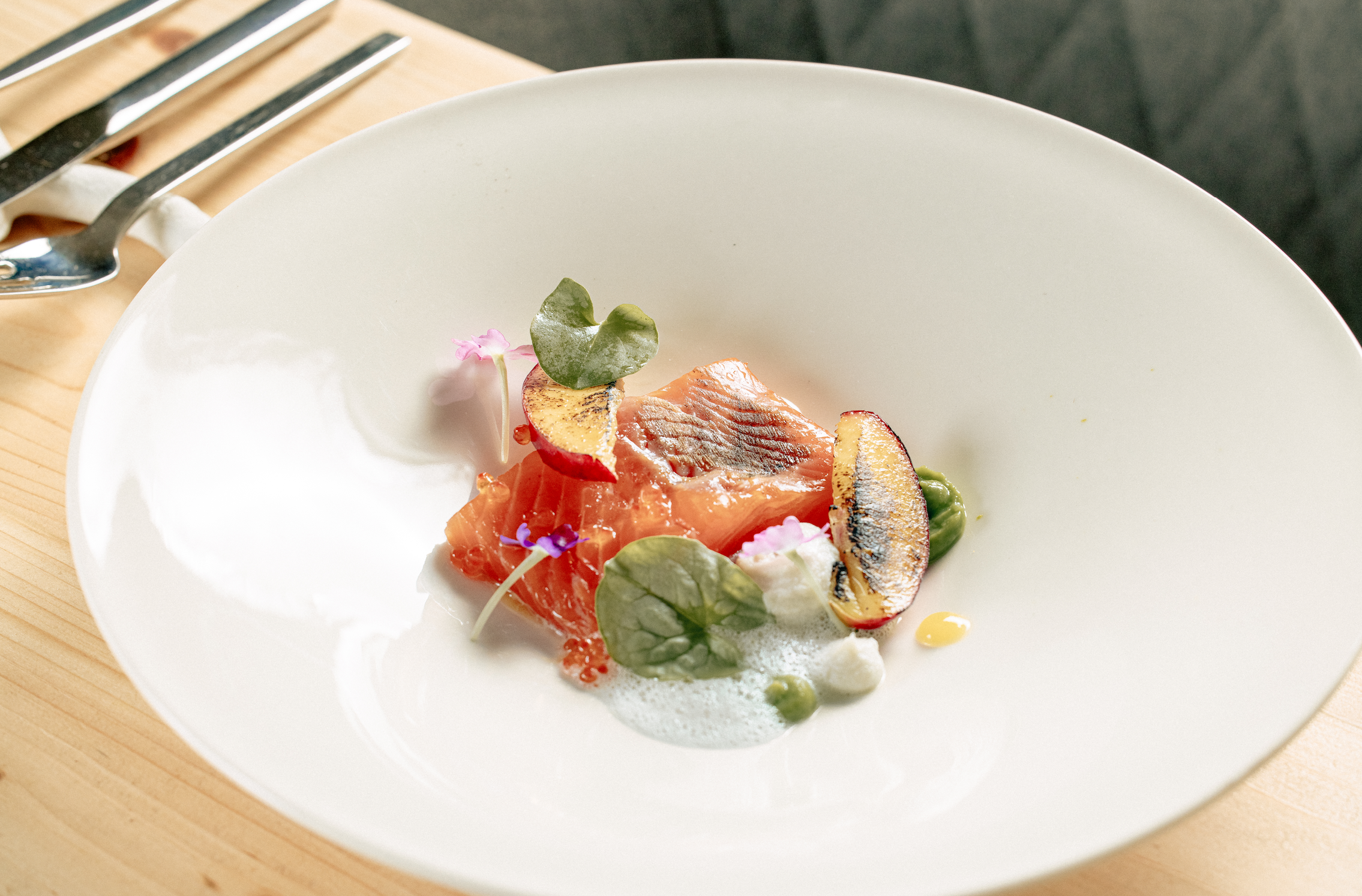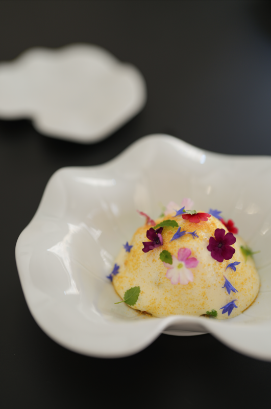 Son écriture culinaire met les fleurs au centre et non en décor : elle fait parler le coquelicot, le jasmin, le mimosa ou le sakura… qui parfument, structurent et signent ses créations. Elle puise son inspiration à travers ses racines, dans son enfance moldave : le feu de bois, les bouillons et la zeama familiale, puis elle transpose ces mémoires en nuances contemporaines. Elle recherche l’évidence et travaille des équilibres précis où l’iode dialogue avec une acidité vive et une douceur florale. Elle cueille et introduit chaque semaine fleurs et plantes sauvages pour que le vivant reste majoritaire dans ses plats, en assumant un cap responsable : elle ne cuisine pas de ruminants, limite le sous-vide à des poches biodégradables et privilégie des ingrédients sourcés autour de Bordeaux. Au fil des saisons, des baies de son pays natal jusqu’aux épices et poivres qui rythment ses jus et ses sauces, Oxana Crétu place la sincérité du geste avant le discours en racontant son histoire et celle des produits. Son prochain objectif ? Décrocher l’étoile non pour cocher une case, mais dans le but de faire reconnaître la signature d’une cuisine des fleurs, personnelle, équilibrée, durable, poétique et féminine.