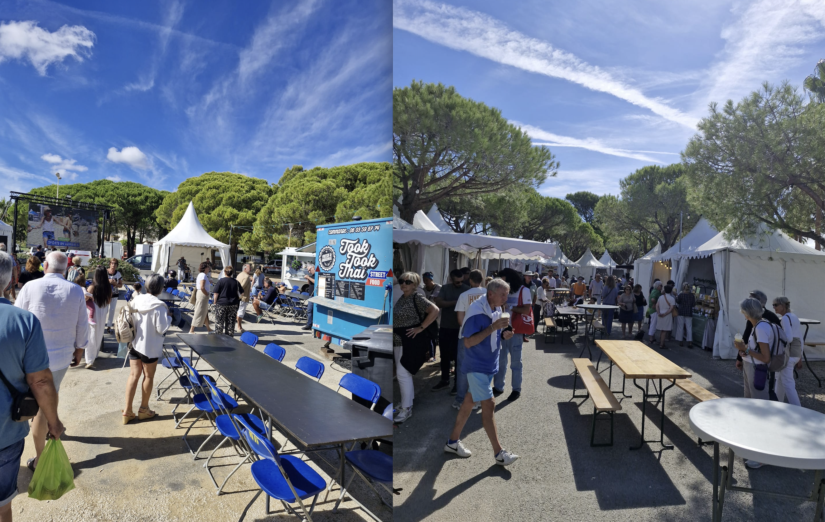 Sous la pinède de La Favière, une cinquantaine de producteurs animent le salon des producteurs. A l’heure de l’apéritif, musiques d’ici & d’ailleurs, funk, pop, reggae ou variété…