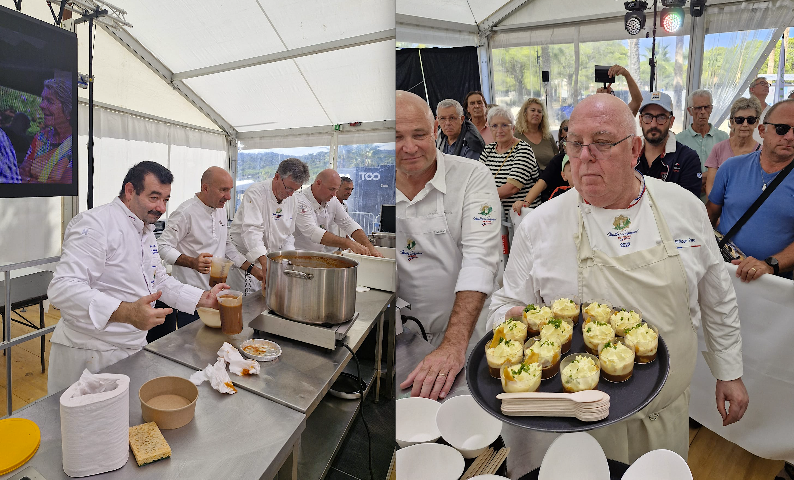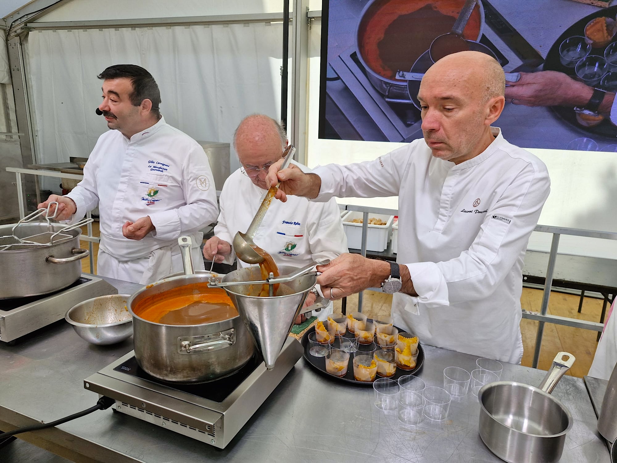 Le parrain Laurent Pourcel, du Jardin des Sens (Hôtel Richer de Belleval Montpellier, Relais & Châteaux), s’associe à plusieurs chefs étoilés pour des démonstrations en direct. Francis Robin, Gilles Brunner, Phillipe Parc, Jean-François Bérard, Alexandre Fabris, David Vaqué, Gilles Carmignani, Thierry Bitoun, Yorann Vandriessche, Patrice Hardy, Bernard Leclerc et Alain Ryon, chefs de l’association des Maîtres Cuisiniers de France qui ont dévoilé quelques secrets de cuisine au public, avant de faire partager de succulentes bouchées.