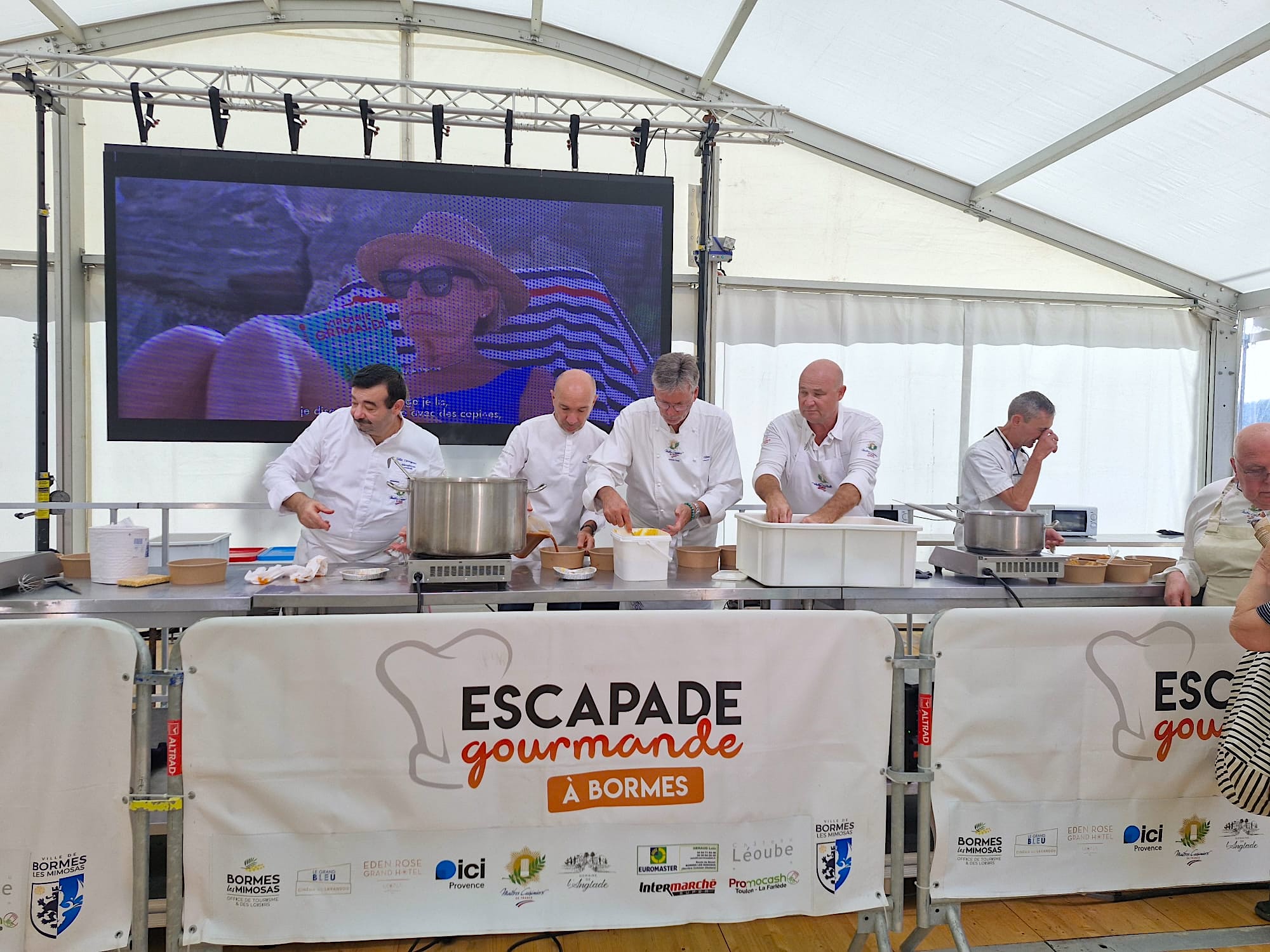 Il y a quelques jours Bormes-les-Mimosas a accueilli Escapade Gourmande, rendez-vous incontournable des gastronomes petits et grands. Pour cette 7ème édition, la ville renouvèle son partenariat avec l’association des Maîtres Cuisiniers de France. Au programme du week-end : des démonstrations, des rencontres, des concours de cuisine, un concours de pâtisserie avec un parrain et un jury exceptionnel – Laurent Pourcel du restaurant Le Jardin des Sens à Montpellier, et les chefs régionaux Philippe Parc, Gilles Brunner, Francis Robin, Gui Gedda, ainsi que Monsieur le Maire François Arizzi et Michel Gonzalez, adjoint à l’événementiel – apéritifs en musique, animations et dégustions ont émaillés les festivités.