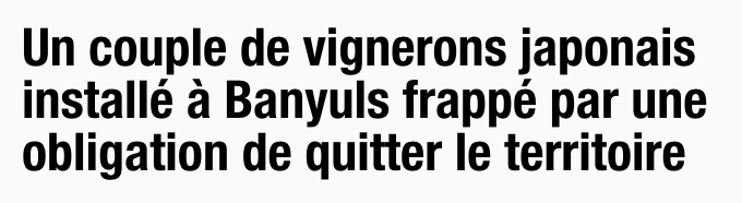 Installé en France depuis 2011 et riche d’une solide expérience dans le vin, un couple de Japonais a investi la somme de 150 000 € dans le vignoble de Banyuls-sur-Mer afin d’y produire des vins nature. Alors que leur première cuvée se retrouve à la table de prestigieux restaurants, notamment au Can Roca à Gérone ou encore Le Verre Volé à Paris, et que la deuxième est réservée à 75 %, la préfecture des Pyrénées-Orientales leur a notifié une obligation de quitter le territoire. Une situation ubuesque que dénonce leur avocat Jean Codognès qui a décidé d’attaquer l’arrêté préfectoral devant le tribunal administratif de Montpellier.
