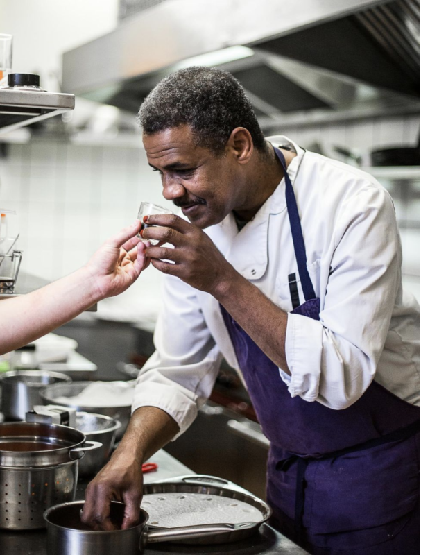 Ayman est l’un d’eux. Né en Erythrée, il a occupé différents jobs dans des hôtels et des restaurants de Khartoum, la capitale du Soudan… «On était très émus quand on nous l’a présenté, raconte Sonia Cautain. On se demandait ce qu’on allait faire, quelle cuisine on allait faire ensemble. Ayman n’avait pas le permis, son français était incertain. Il fallait qu’on le loge. Il s’est retrouvé aux fourneaux avec Valérie [Boudot]. Il a tout de suite été en confiance avec nous. Il n’y avait aucun doute d’un côté comme de l’autre.»