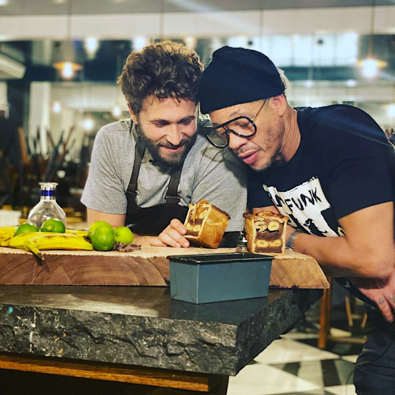JULIEN DUBOUE – « Superbe journée de tournage autour de trois recettes ! Quel plaisir de te voir t’extasier Comme moi sur un simple pâté en croûte ! Merci Joey Star de rentrer dans notre monde !«