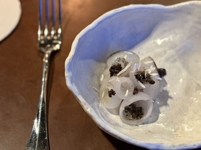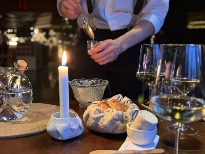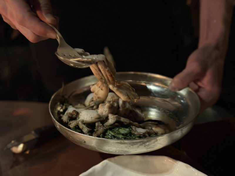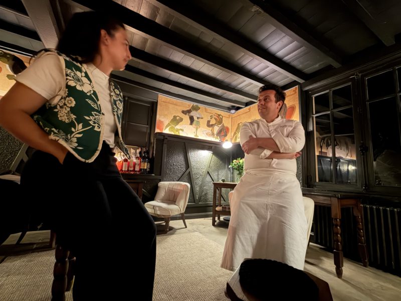 Cette philosophie de la transmission, on la retrouve chaque matin dans un rituel qui lui est propre. En arrivant, il fait le tour de du restaurant et salue chacun les yeux dans les yeux car c’est dans les yeux de son équipe qu’il est possible de lire ce qui ne se dit pas. C’est là que tout commence, avant le premier service, avant la première assiette. Dans cette conviction profonde que l’énergie d’une maison se lit d’abord sur les visages de ceux qui la font et que prendre soin de ces visages-là, c’est la première étape du métier de cuisiner.