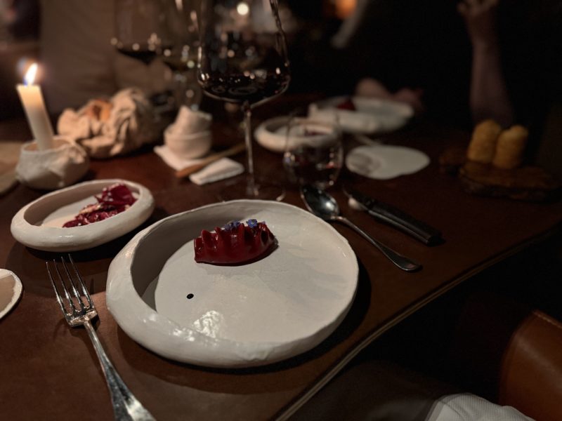 L’architecture signée Patrick Bouchain, un mélange entre bâti ancien et structure contemporaine audacieuse, quelque part entre le chapiteau et la maison de famille n’est pas un décor. C’est une intention. Il a fallu des années à Gauthier pour trouver la cohérence entre ce qu’il cuisinait et ce que la maison racontait. « Il y avait au commencement un décalage », reconnaît-il avec la franchise de quelqu’un qui n’a plus rien à prouver. « J’avais la cuisine, mon style, mais la place ne me ressemblait pas encore. » Aujourd’hui la cohérence est totale : tables en cuir organique tatouées, pas de nappe, les assiettes volontairement désaxées, autant de choix qu’il pose depuis vingt-trois ans pierre après pierre et que l’on retrouve désormais partout ailleurs, souvent sans savoir d’où cela vient.