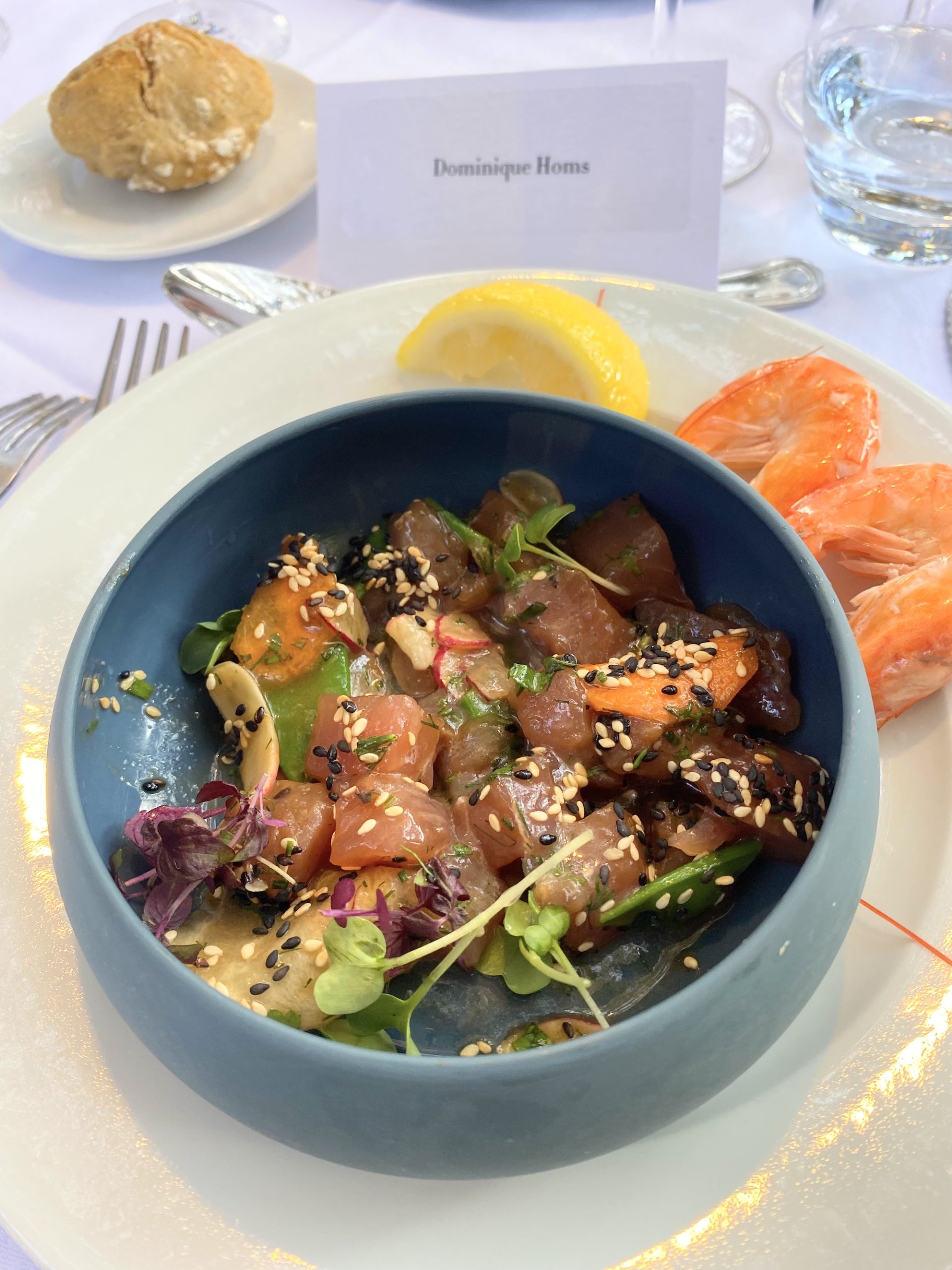 L’entrée, le Poké Bowl de Thon rouge de Méditerannée, radis, mange-tout, carottes, cébettes, aneth et coriandre a lancé avec fraicheur et saveur ce diner d’exception.