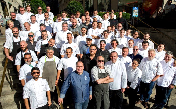 Des chefs venant de Dubaï, d’Irlande, de Londres, d’Inde, d’Italie, du Pérou de France, et de retrouver notamment les chefs Hélène Darroze, Charlie Palmer, Alfred Portale, Larry Forgione tous rassemblés pour une bonne cause.