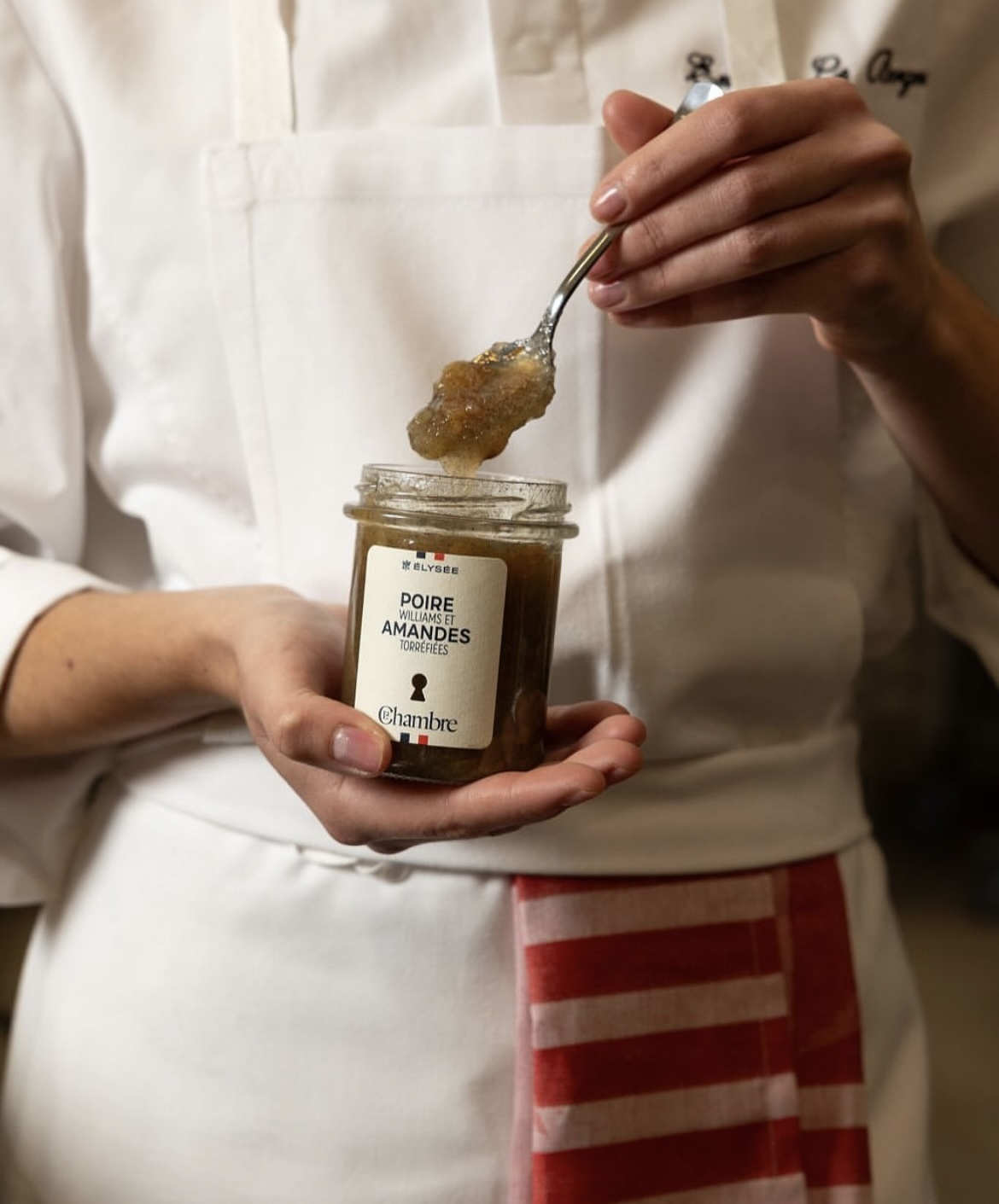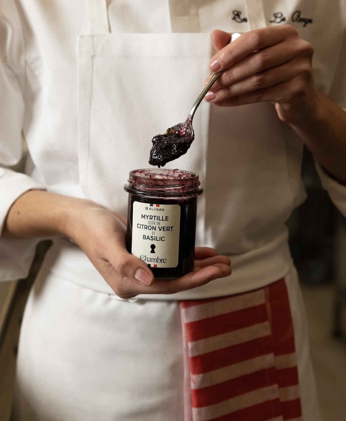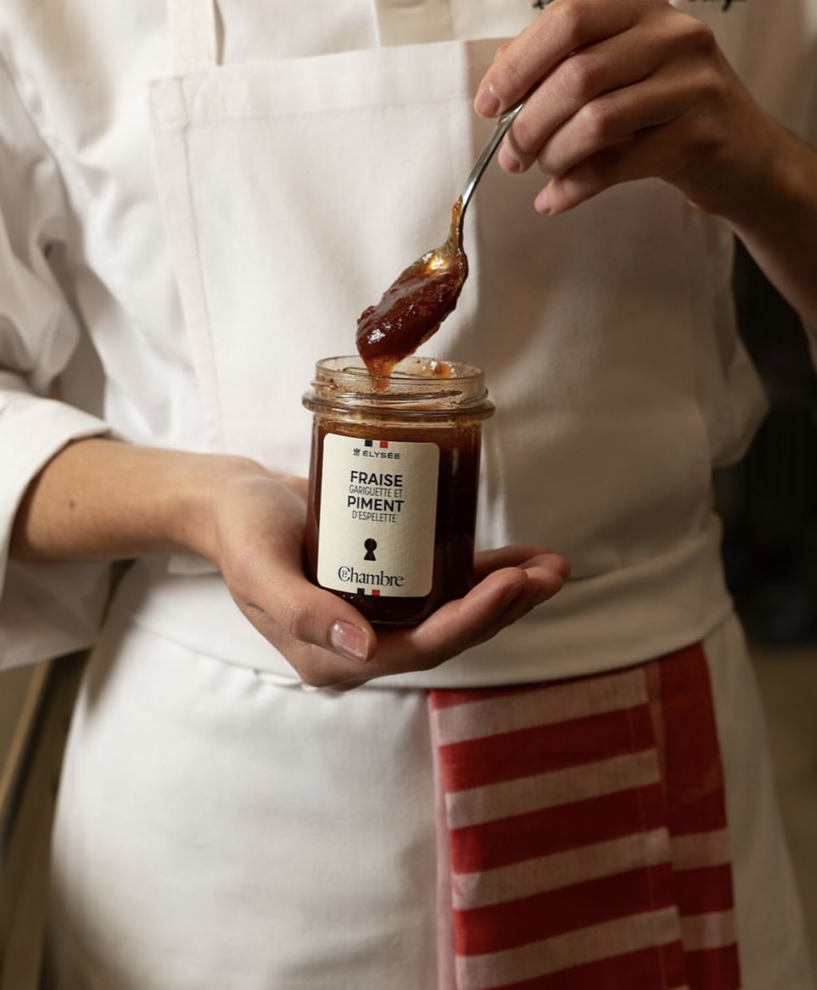 Des confitures de La Chambre : confitures myrtille-citron vert-basilic, poire-amande-vanille, fraise-piment d’Espelette.