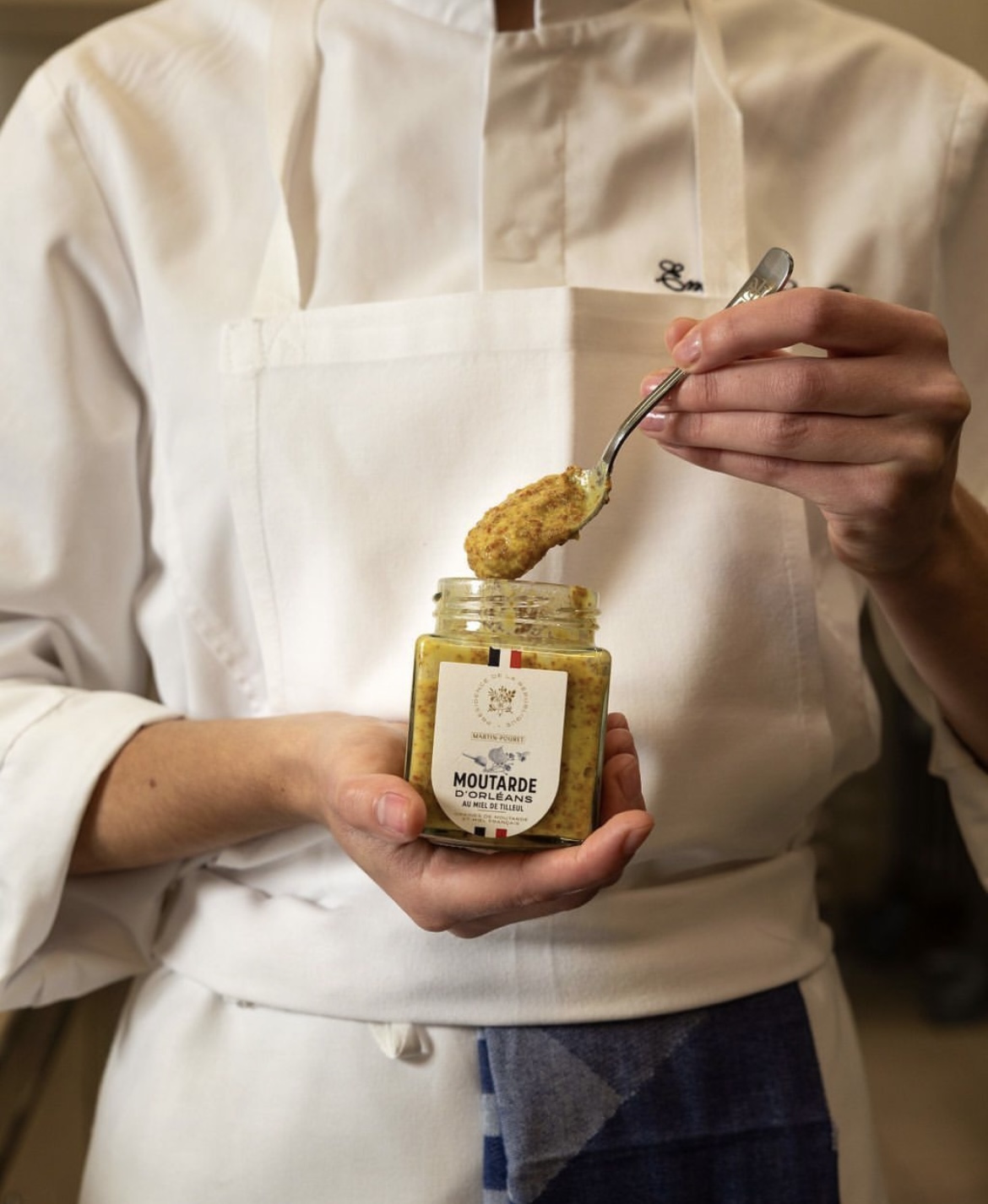 De la moutarde de la maison Martin-Pouret : moutarde d’Orléans au miel de tilleul, vinaigre d’Orléans 10 ans d’âge.