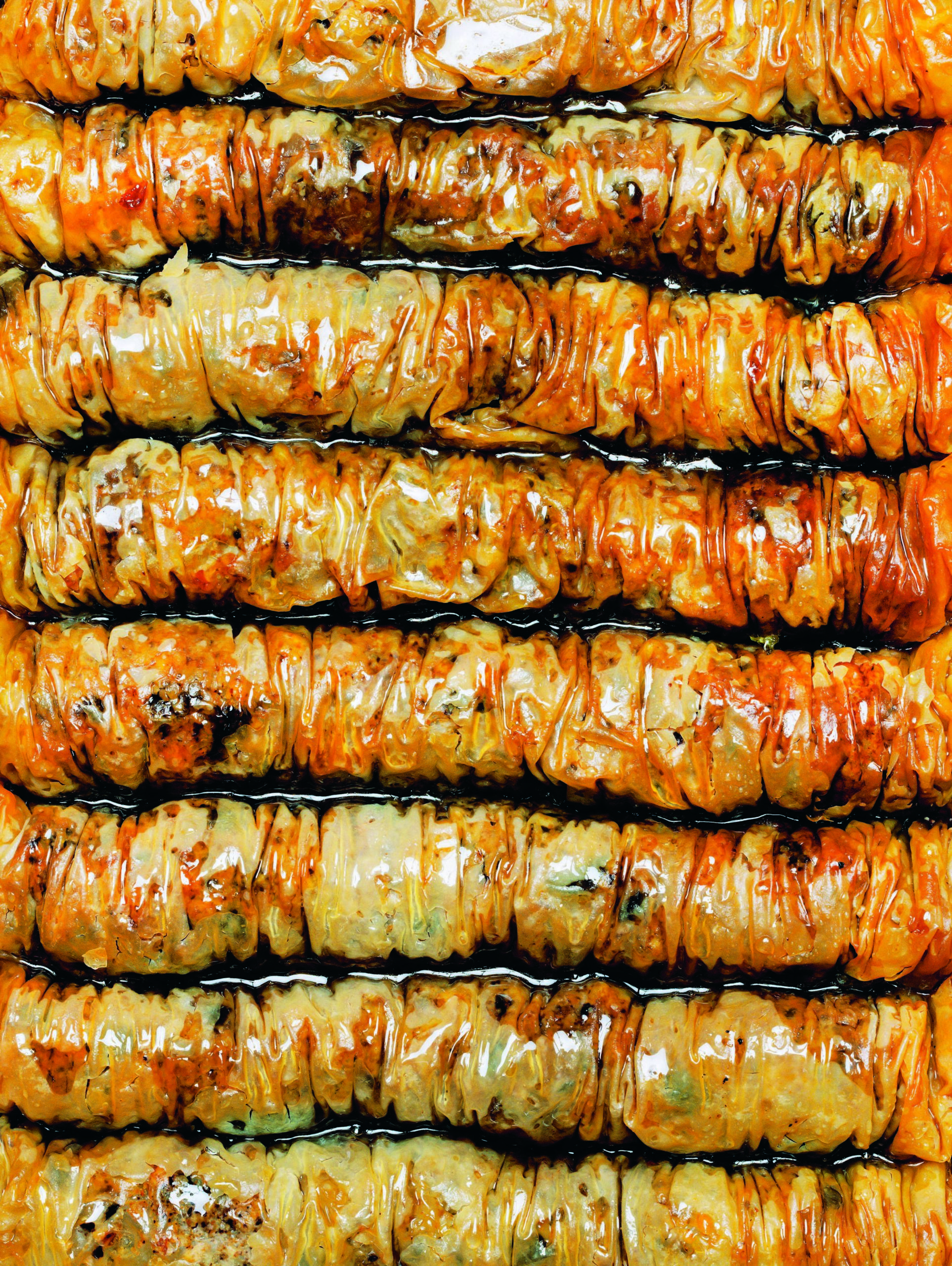 Un dessert – Galaktoboúreko, un dessert à base de pâte filo, de crème, de semoule et de sirop de miel aromatisé à l’orange, une recette à retrouver dans mon nouveau livre Filosophie.